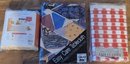 These are different sizes. All come in the original packages. The red checkered one looks like it might have been used before. See pictures for details.