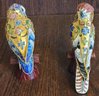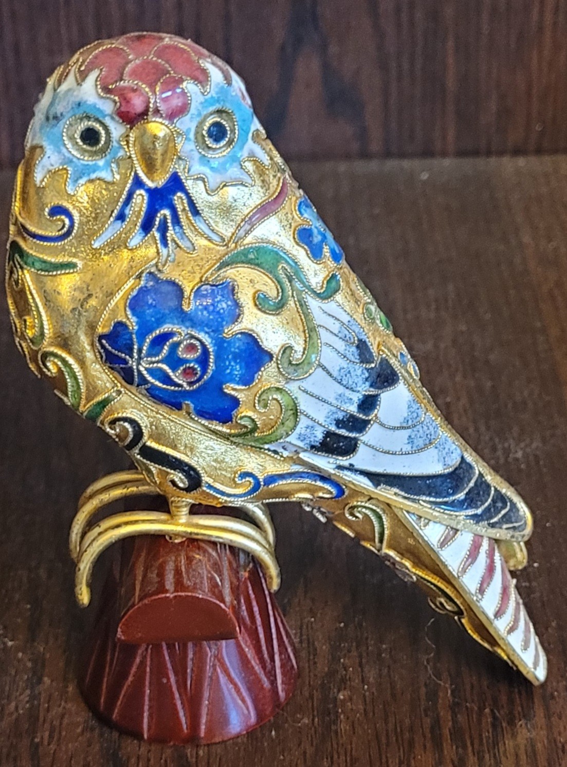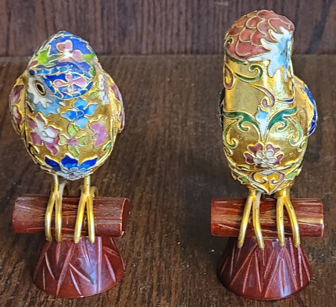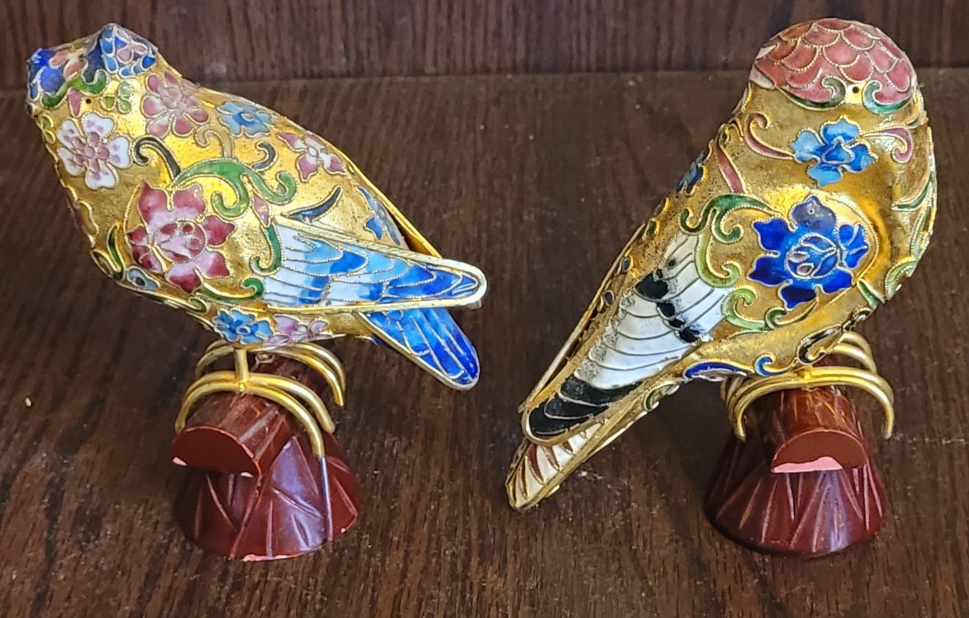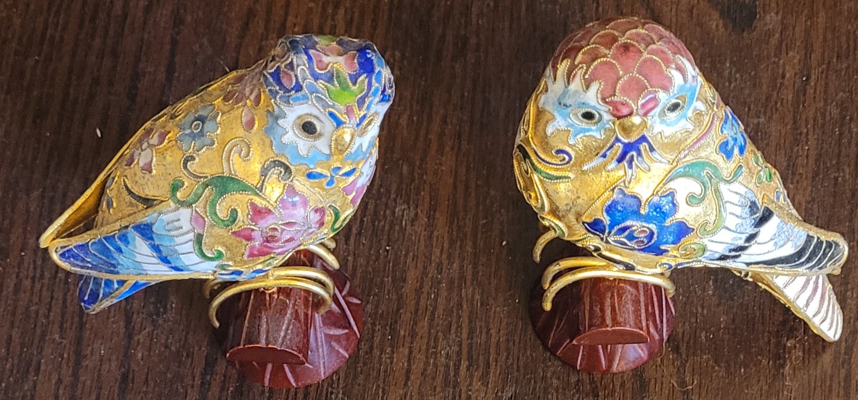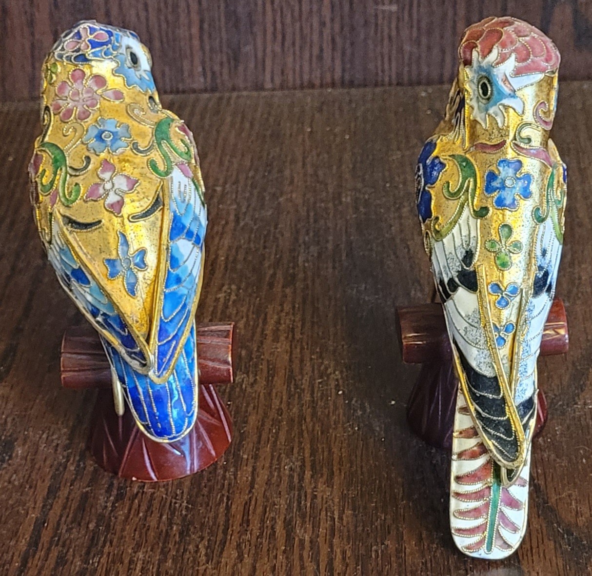 This product is a pair of vintage Chinese cloisonne figurines in the shape of owls. Standing at 5.5 inches tall, these traditional inlaid enamel owls come with a stand and showcase intricate details and colors. Made in China, these antique pieces add a touch of Asian elegance to any home decor. Perfect for collectors or those with a appreciation for Chinese antiques, these cloisonne owls are a unique and cultural addition to any figurine or statue collection.
