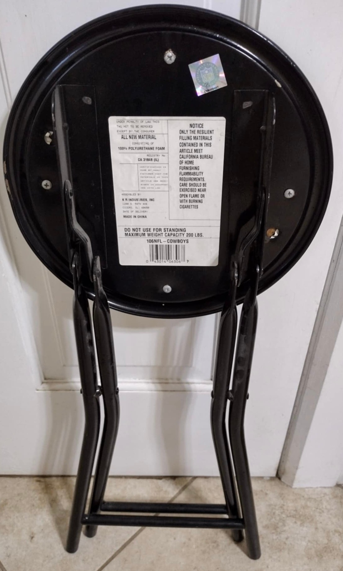 VTG Dallas Cowboys Retro Helmet Logo NFL 1996 K R Industries Folding Stool Chair.