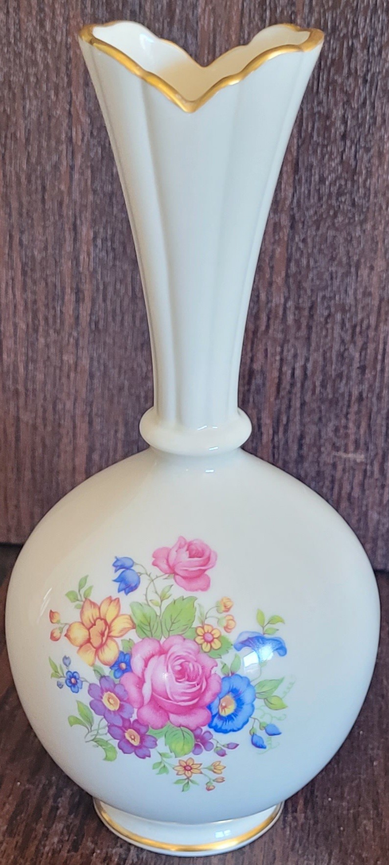 This measures 7.5" tall. I didn't see any chips or cracks. See pictures for details.