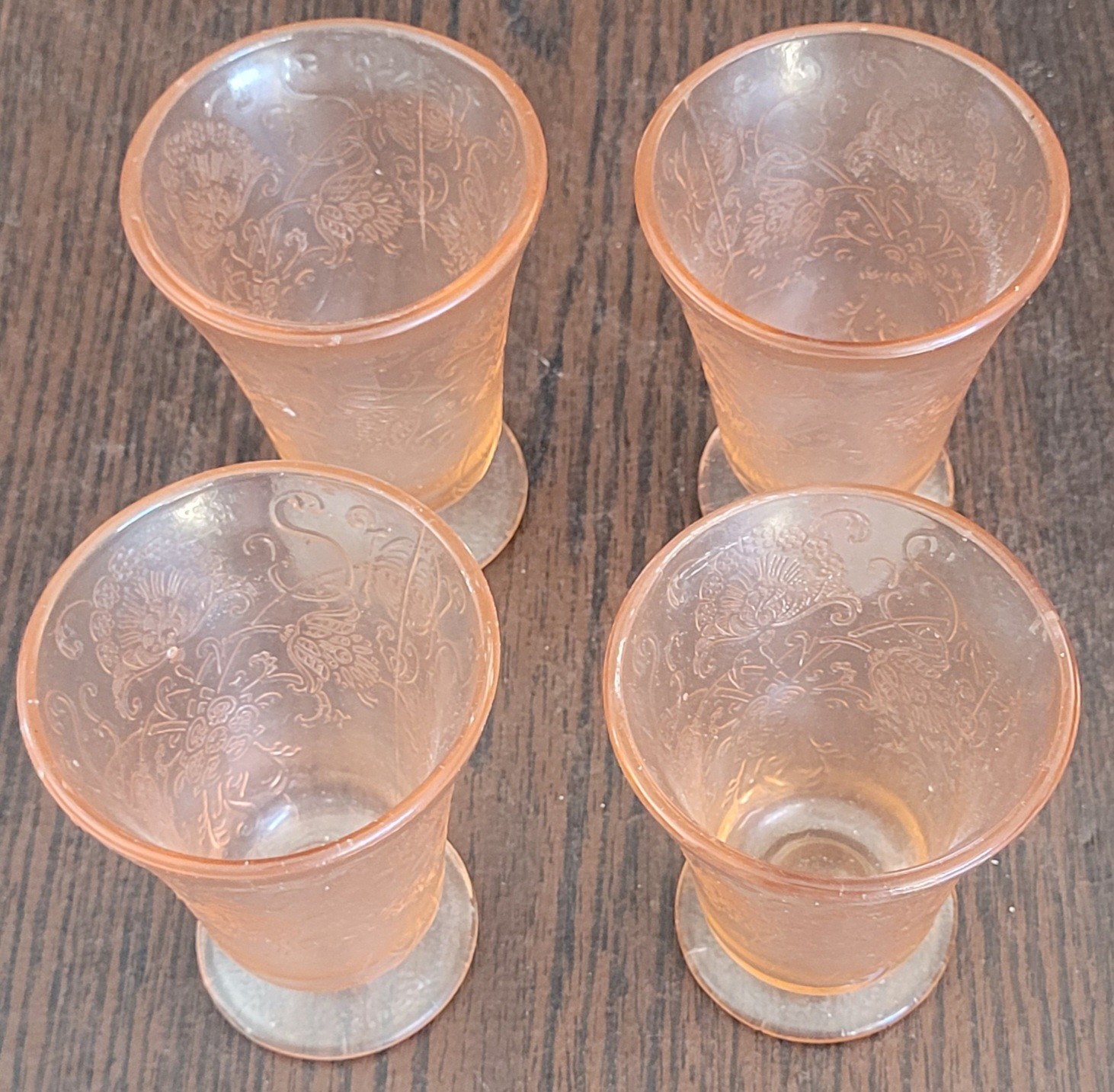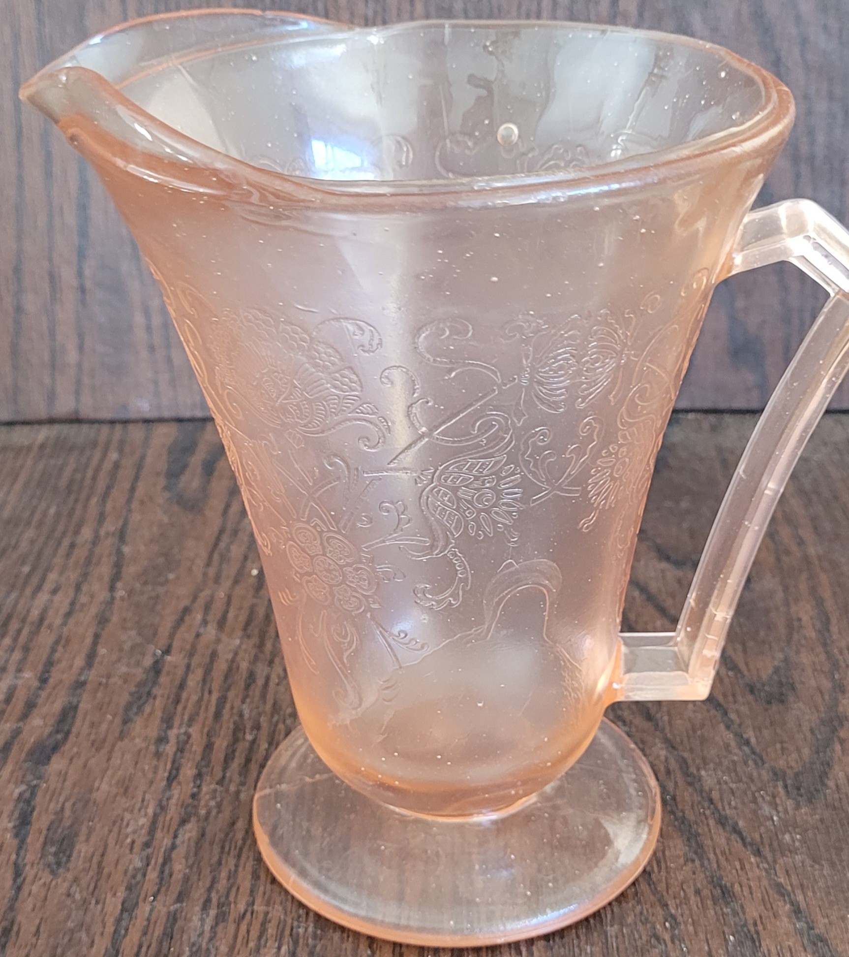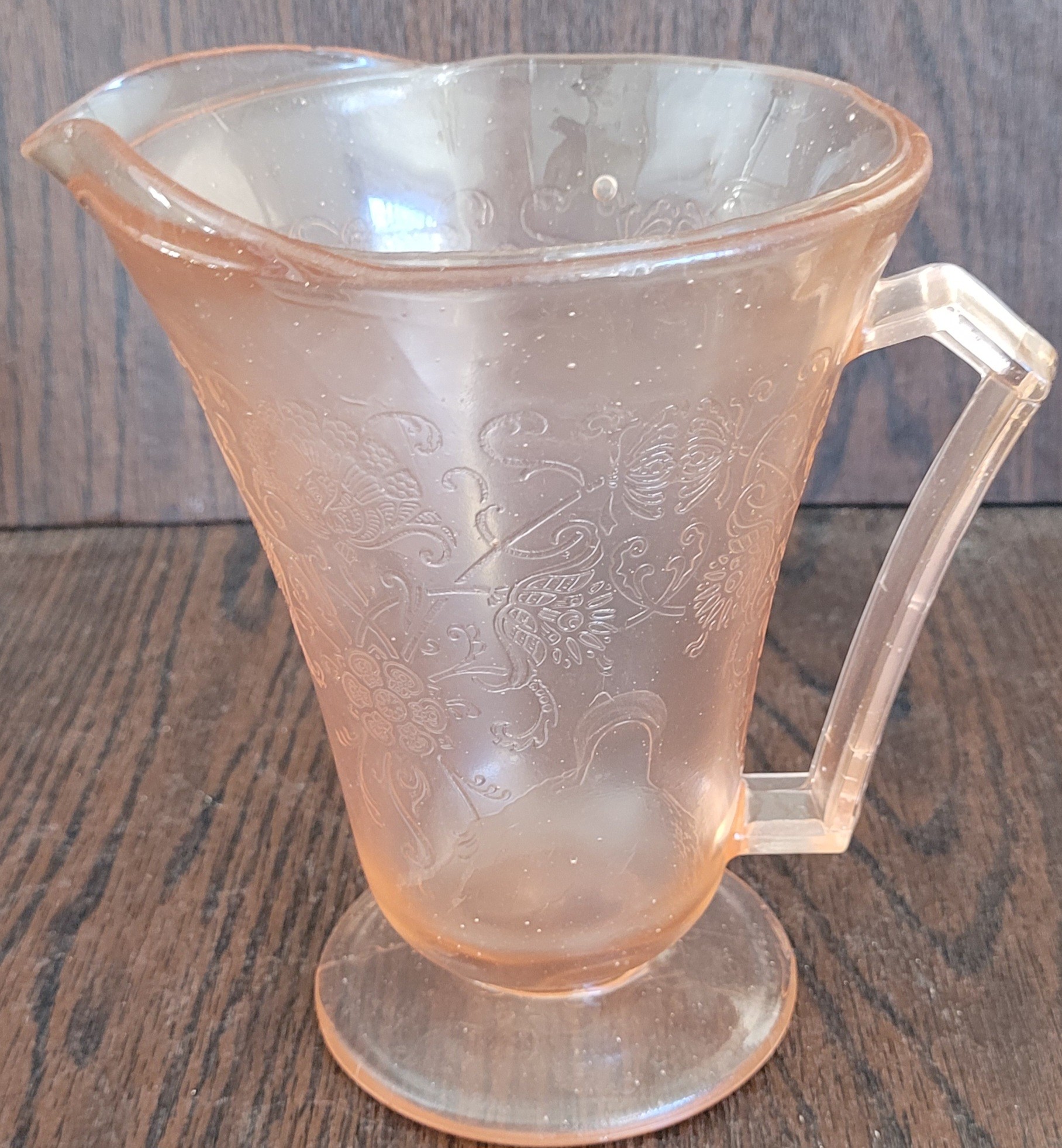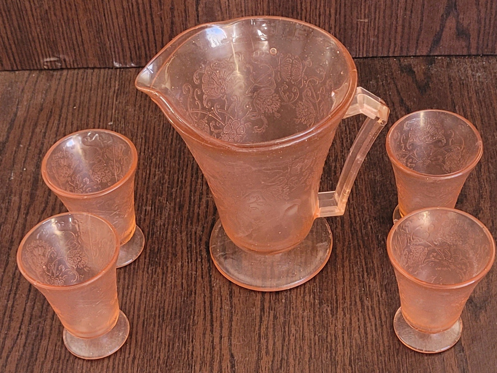 The pitcher measures 7.25" tall and the glasses are 3.75" tall. The pitcher does have a bubble flaw in the glass. See pictures for details.