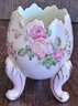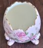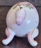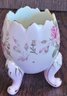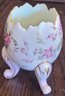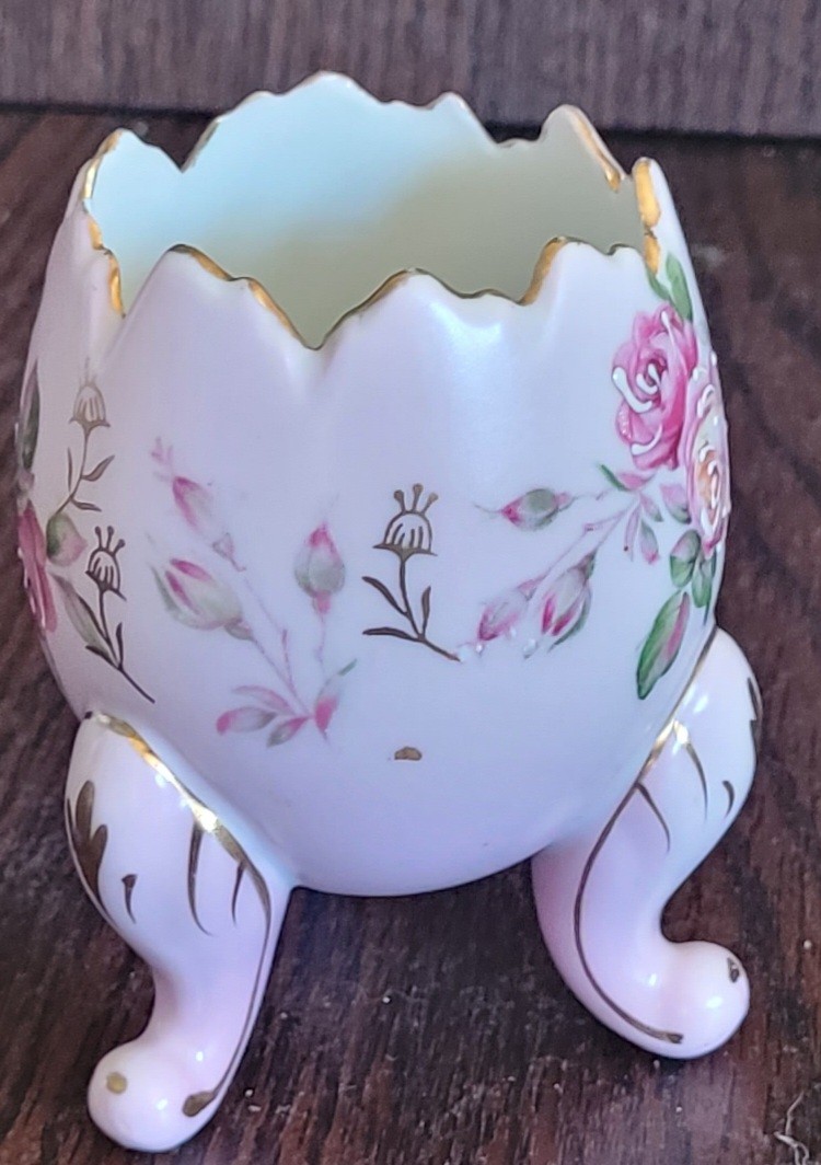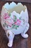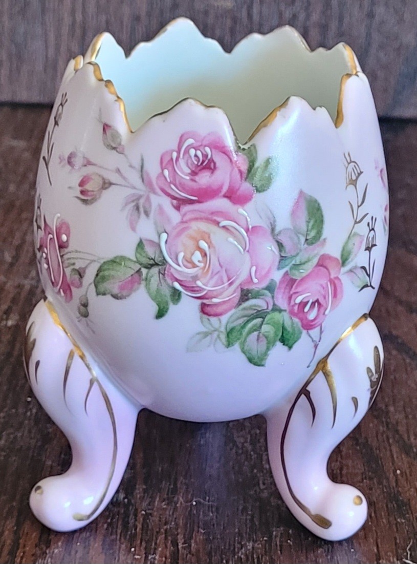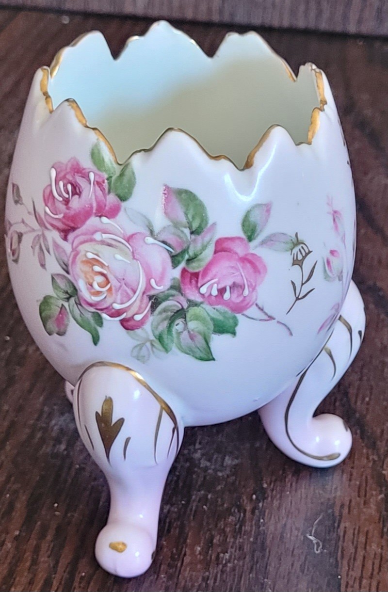 This hand painted vase measures 3.75" tall by 3" in diameter. I didn't see any cracks or chips. See pictures for details.