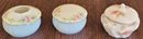 2 of these measure 2" tall by 3.5" in diameter. One of them does have a crack on the lid. The other one measures 3.5" tall by 4" in diameter. This one does have some powder in it. See pictures for details.