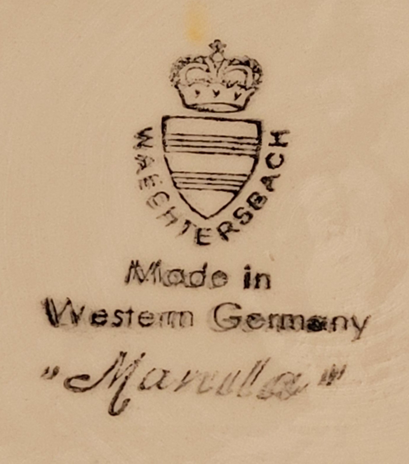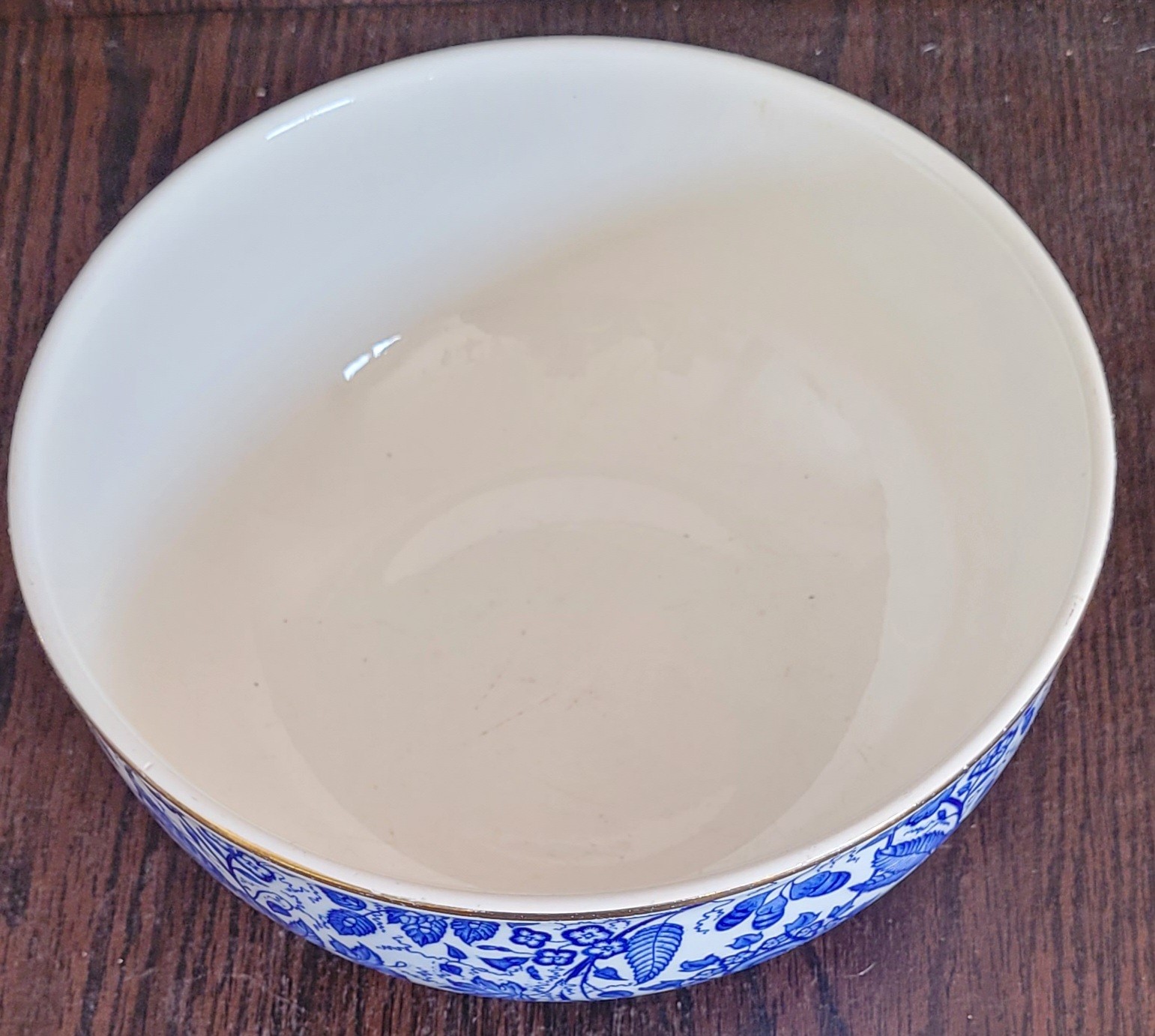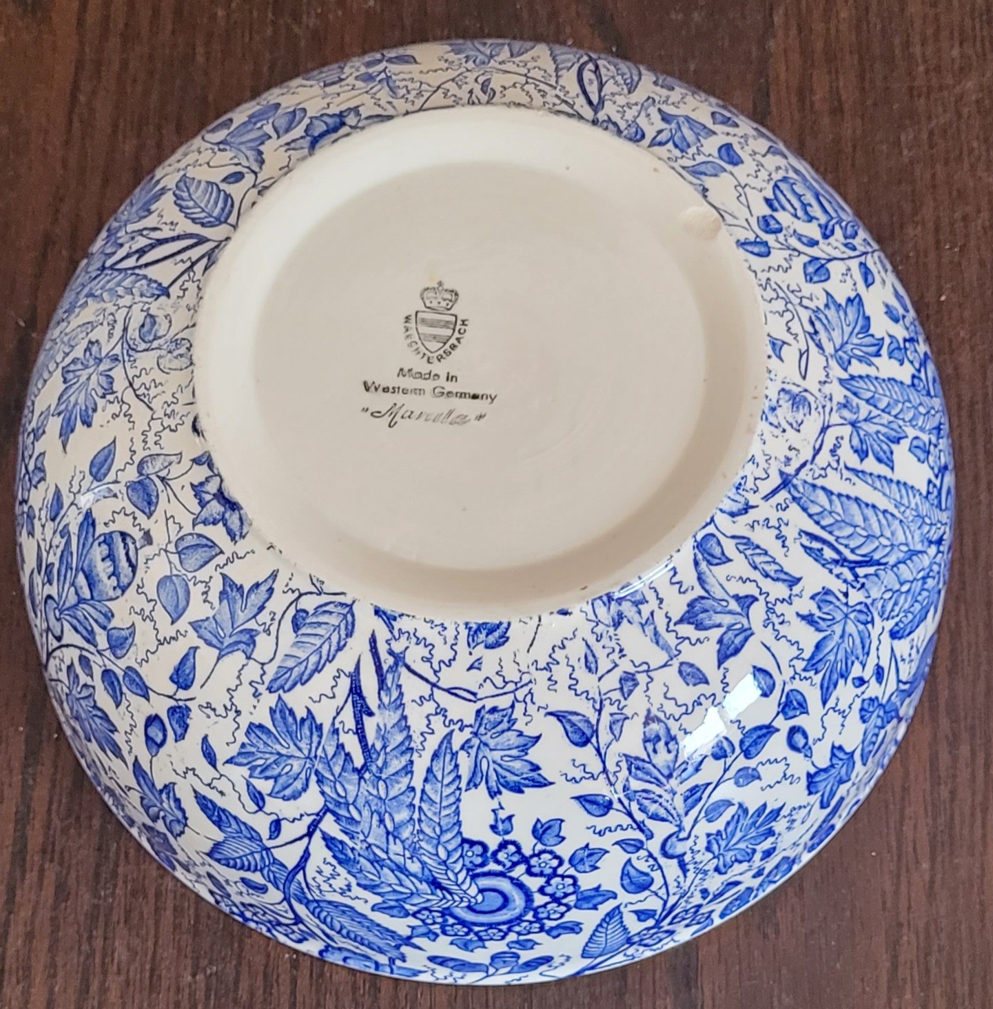 This measures 8.25" in diameter by 3.5" tall. It does have some scratches on the bottom of the bowl and a small chip on it. See pictures for details.
