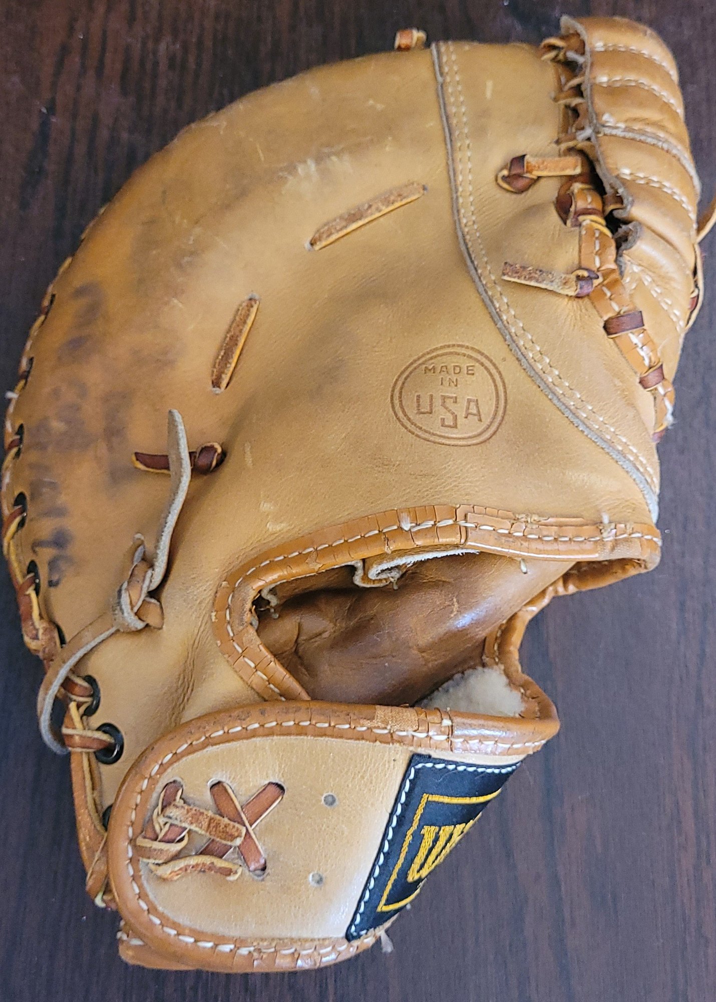 This is a left handed glove. It is in used condition but still in good shape. See pictures for details.