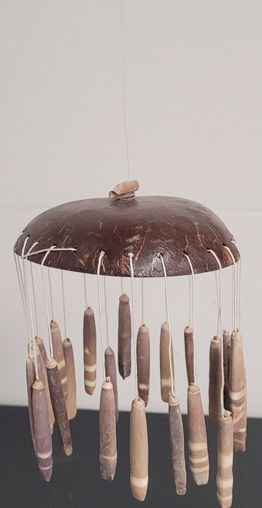 This is a beautiful wind chime and sounds great. Measures about 12" long. See pictures for details.