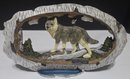 Wolf Statue with a Rocky Mountain National Park emblem on it. Measures 8.5 x 5.5. Possibly Resin.