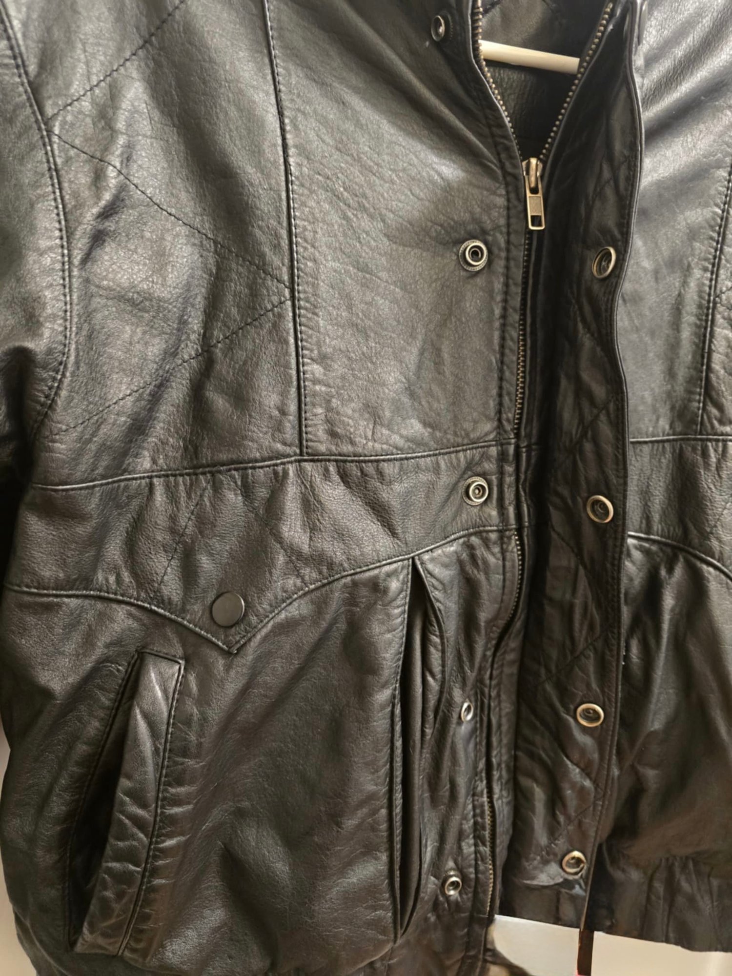 Womans Size Small Leathet Coat. Good condition. Hard to read the maker. Possibly Chia.