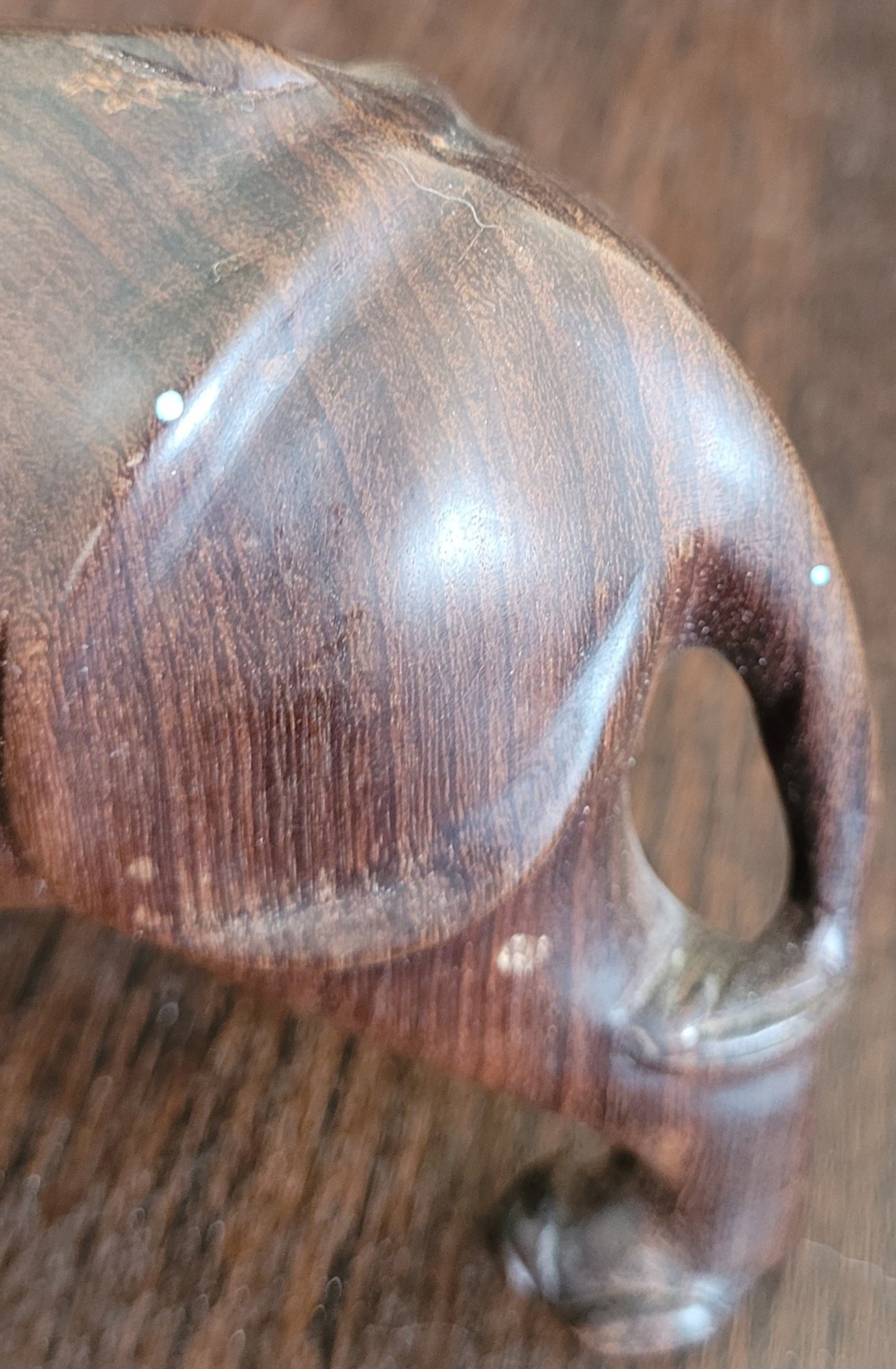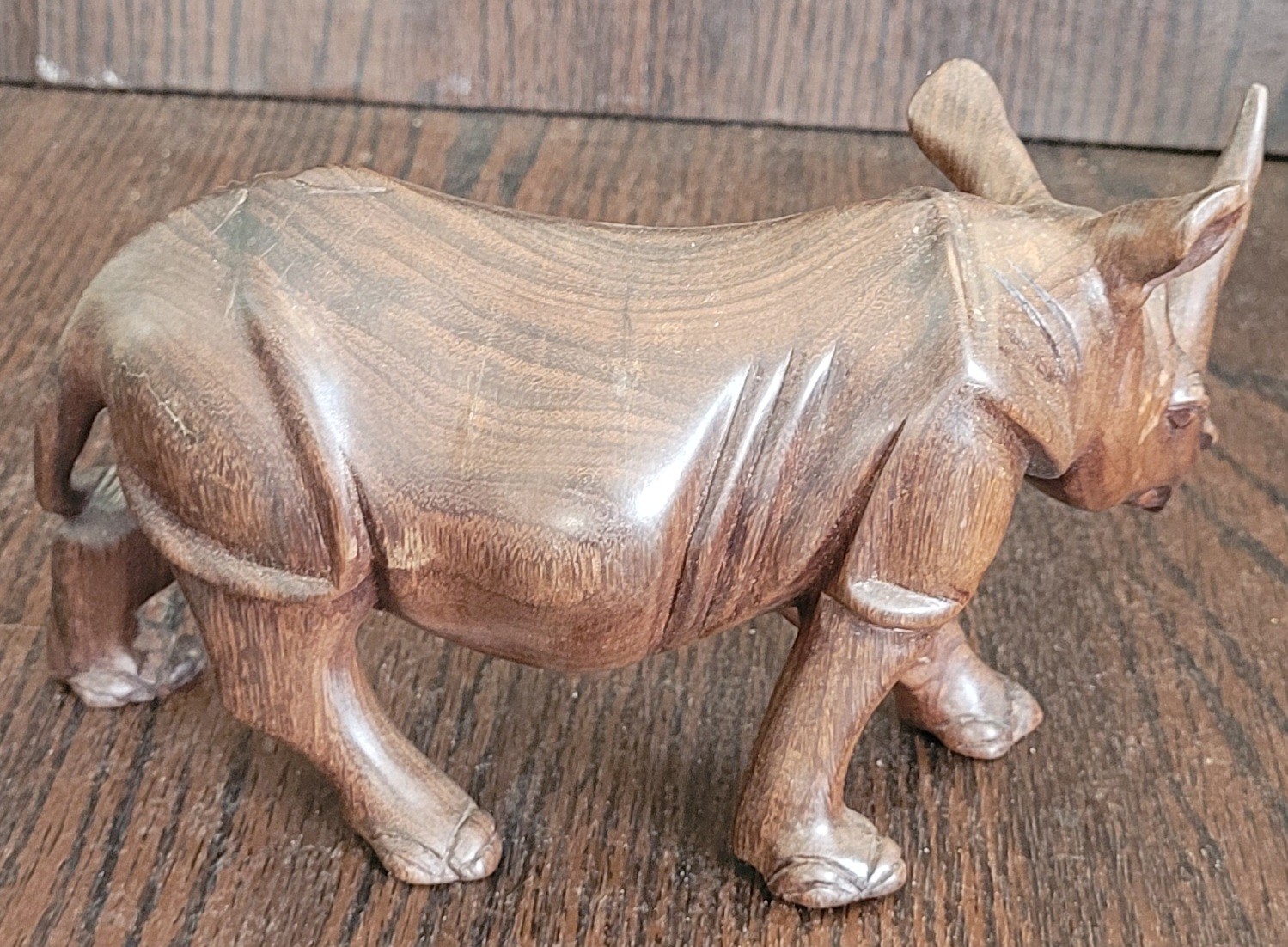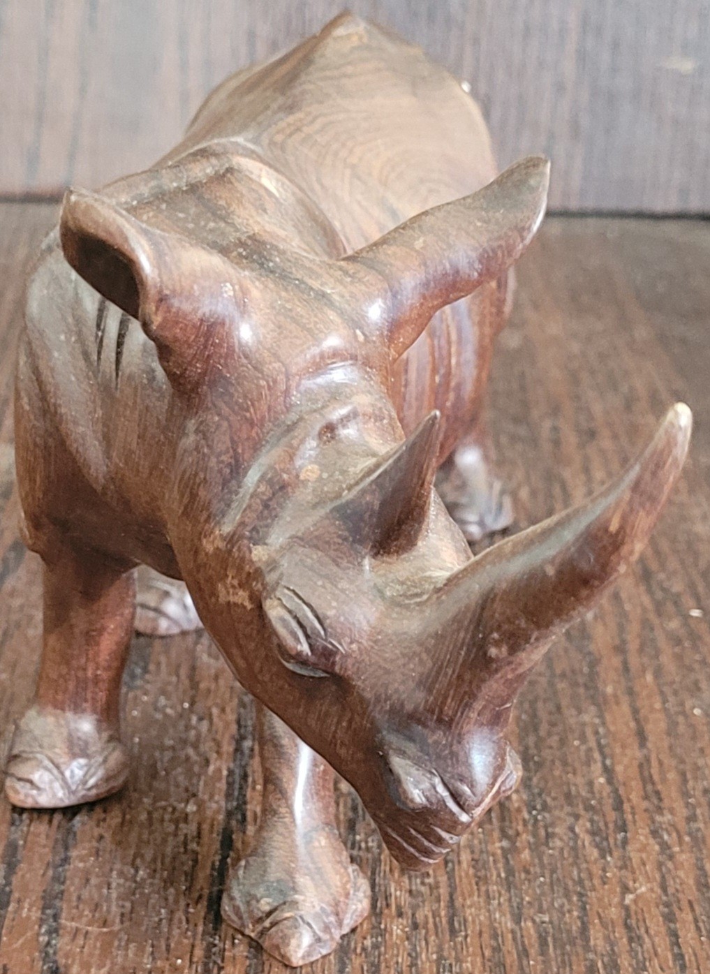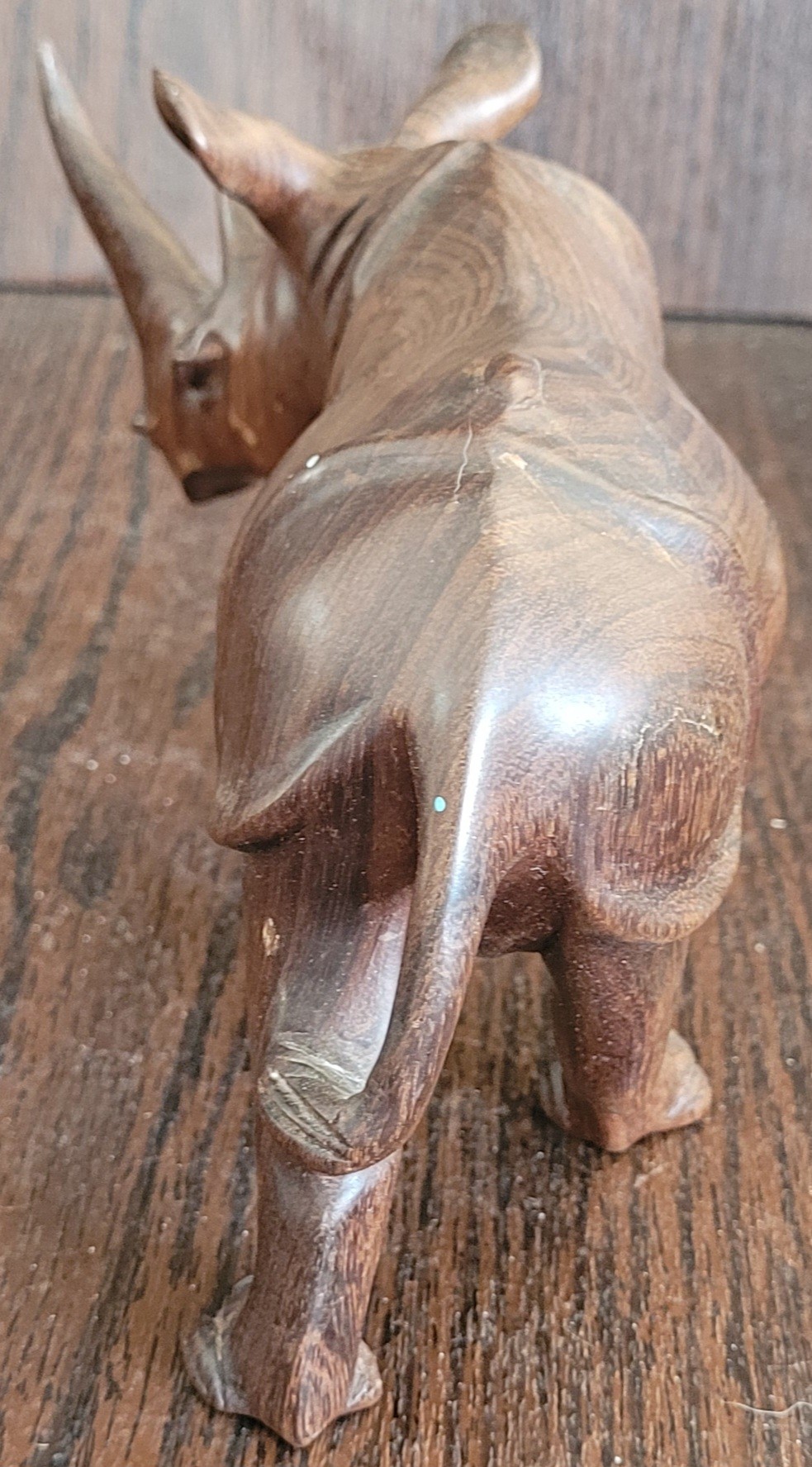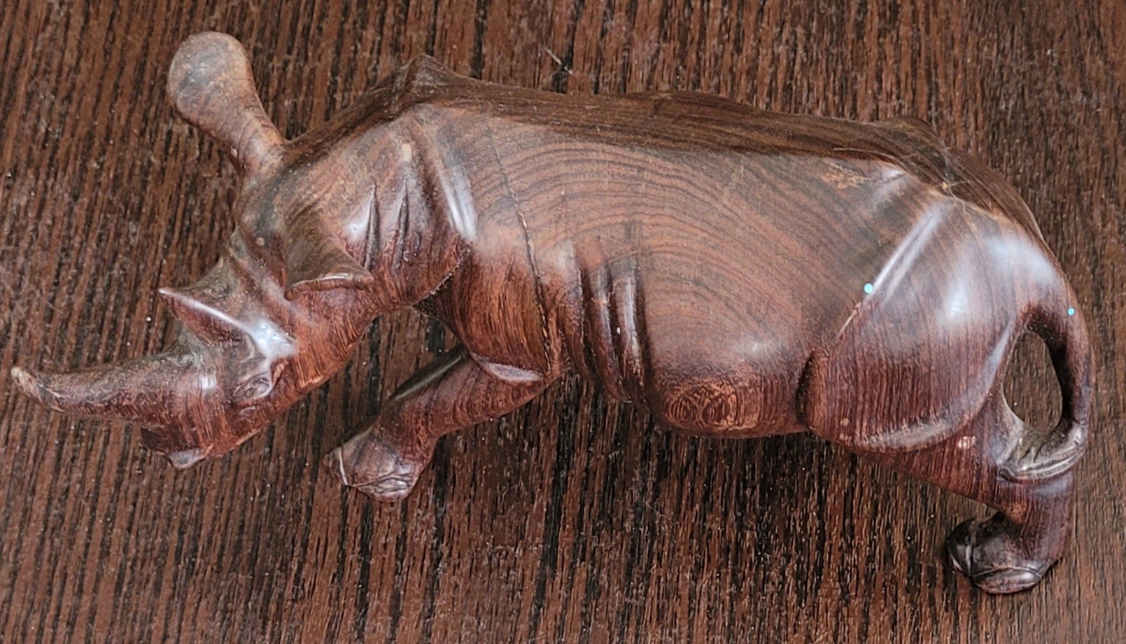 This measures 7" long by 4.25" tall. It does have some blue spots one it. See pictures for details.