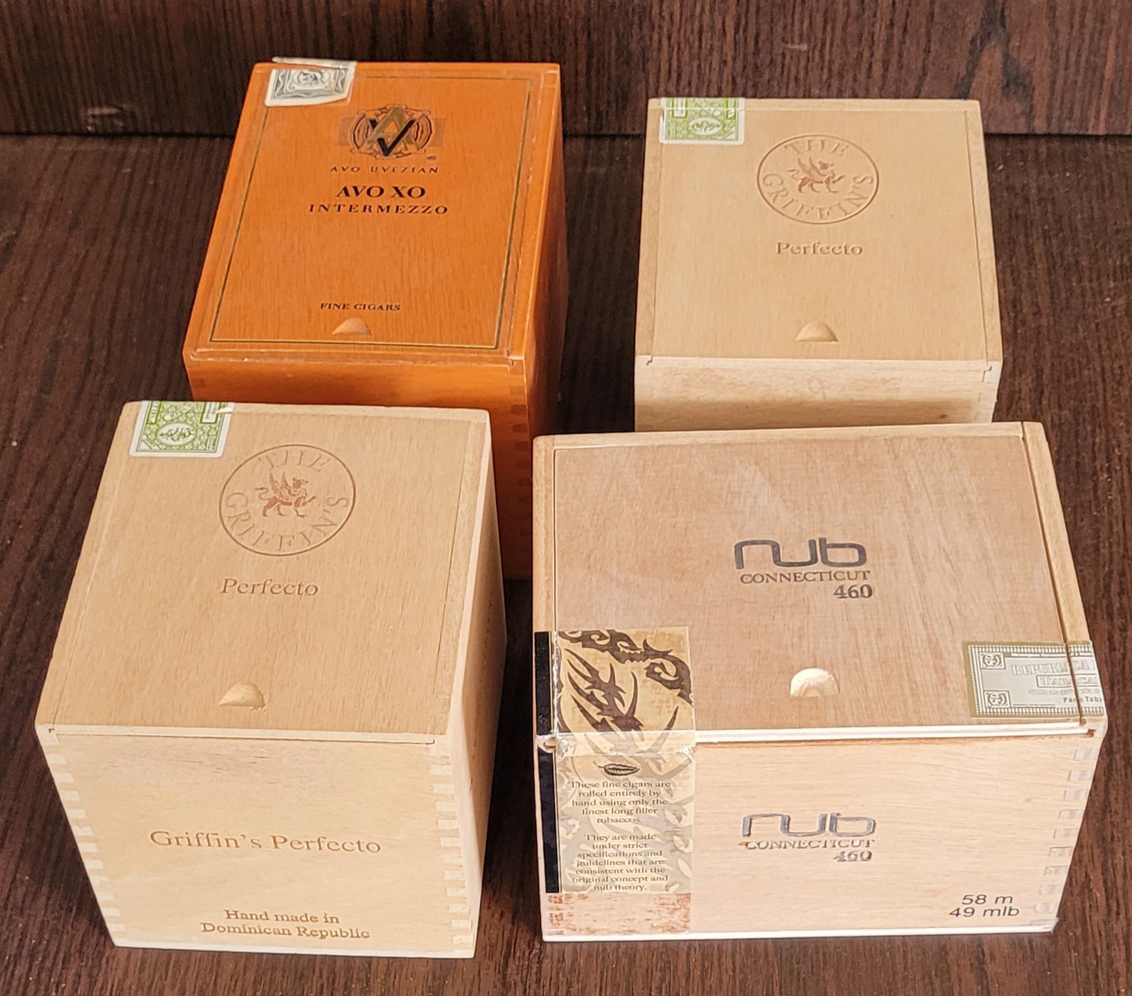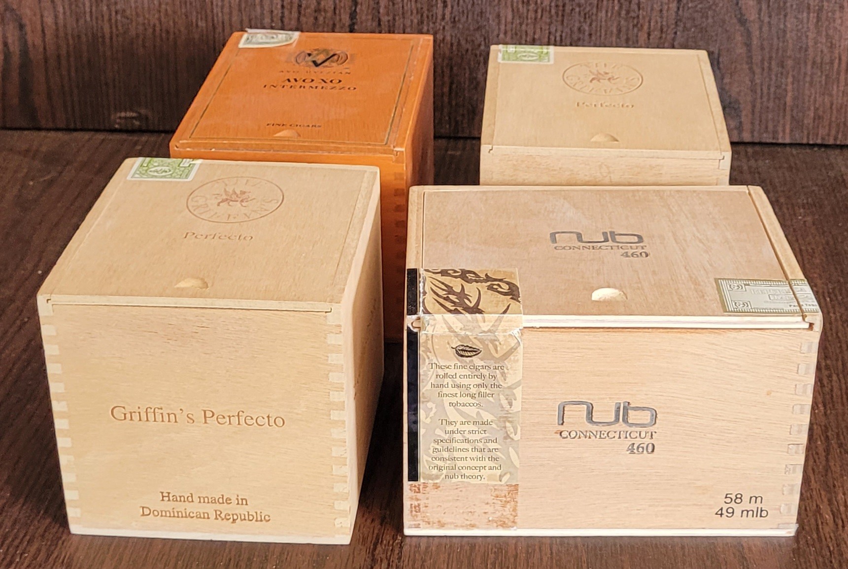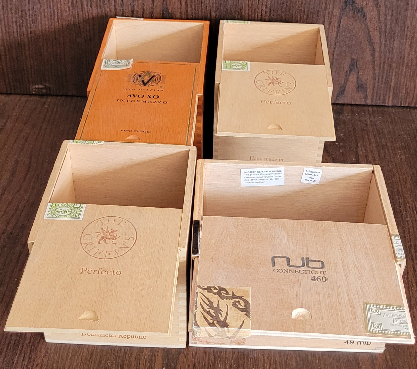 This lot comes with 4 different wooden cigar boxes. These are different sizes. See pictures for details.