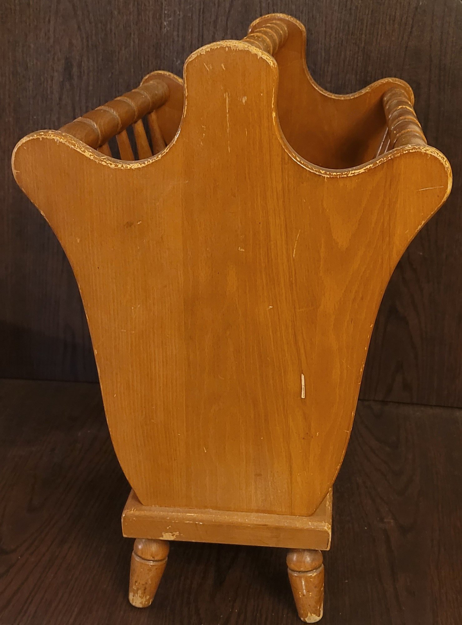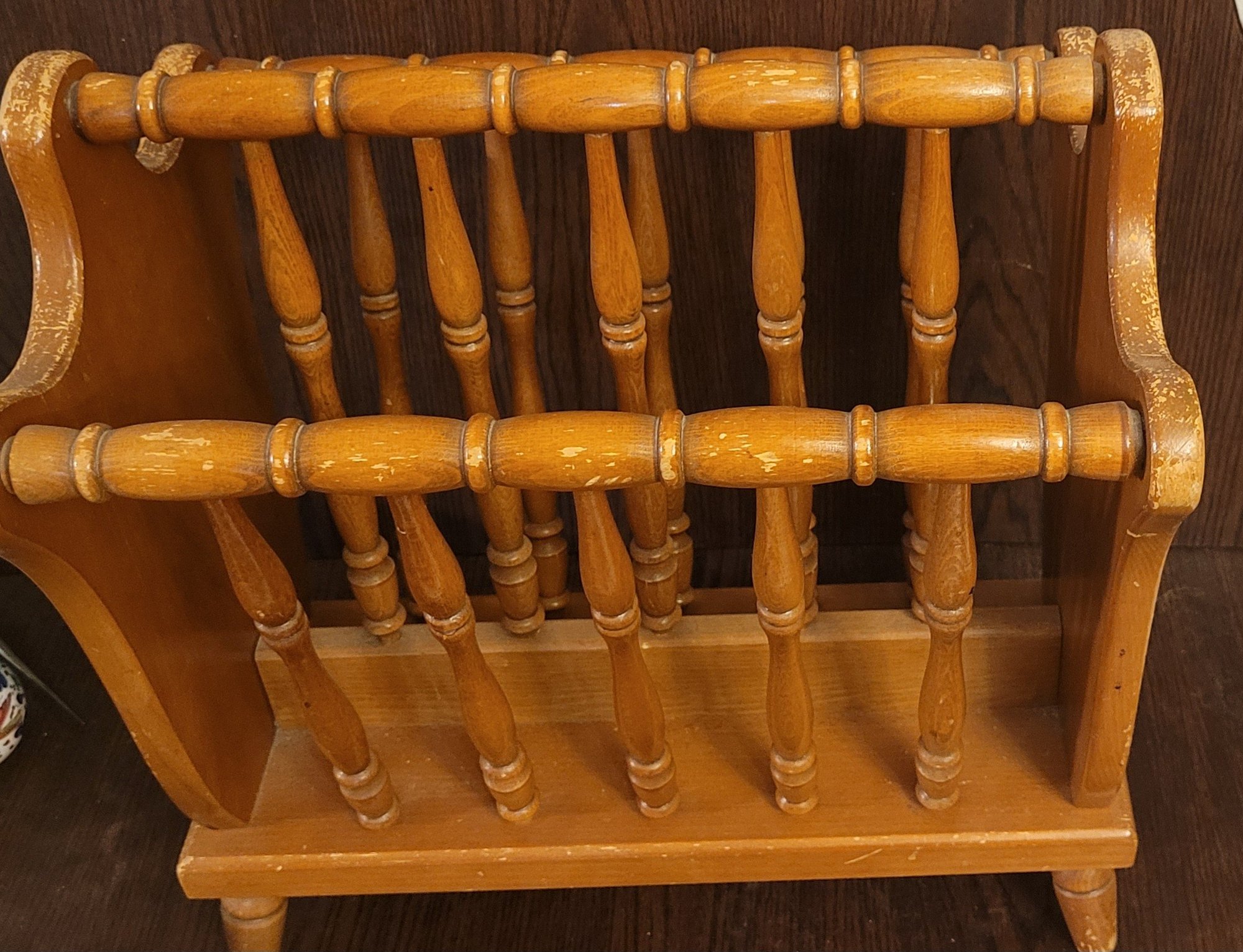 This measures 17" long by 12" wide by 18.5" tall. It could use a new coat of stain. See pictures for details.