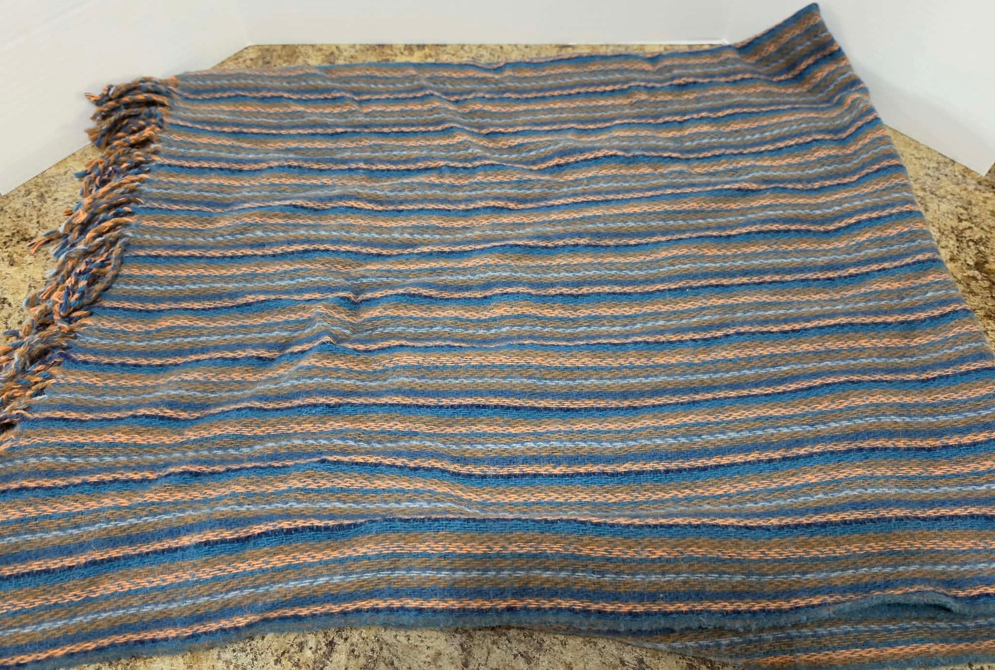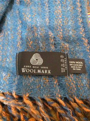 Woolmark 100% wool throw blanket. Measures approximately 52 x 58 without the fringe. Good condition.