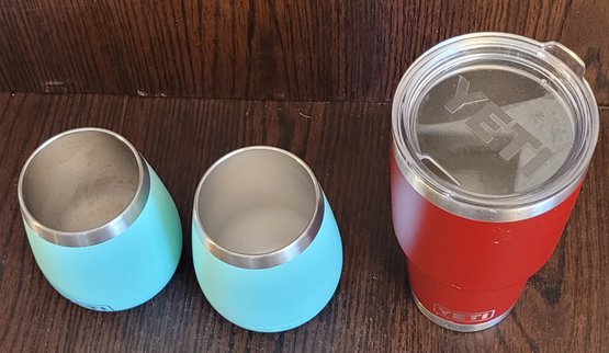 This lot comes with one 30 oz tumbler and two 10 oz wine tumblers. See pictures for details.