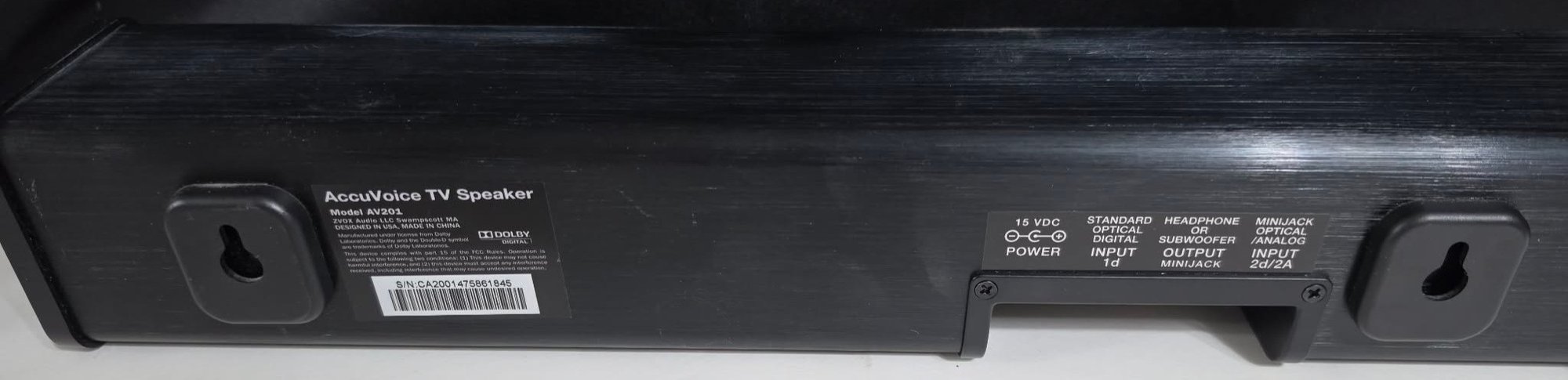 Zvox Accuvoice TV Speaker. Comes with power cord and remote. Untested.
