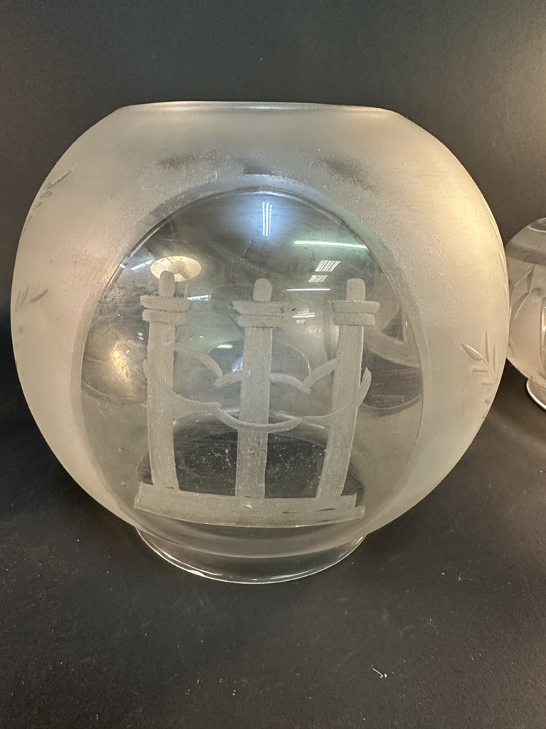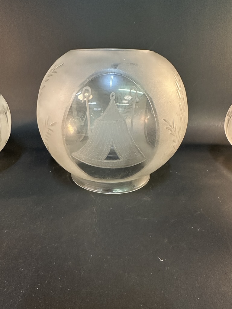 Antique Odd Fellows Etched Glass Shade W/ Two Others