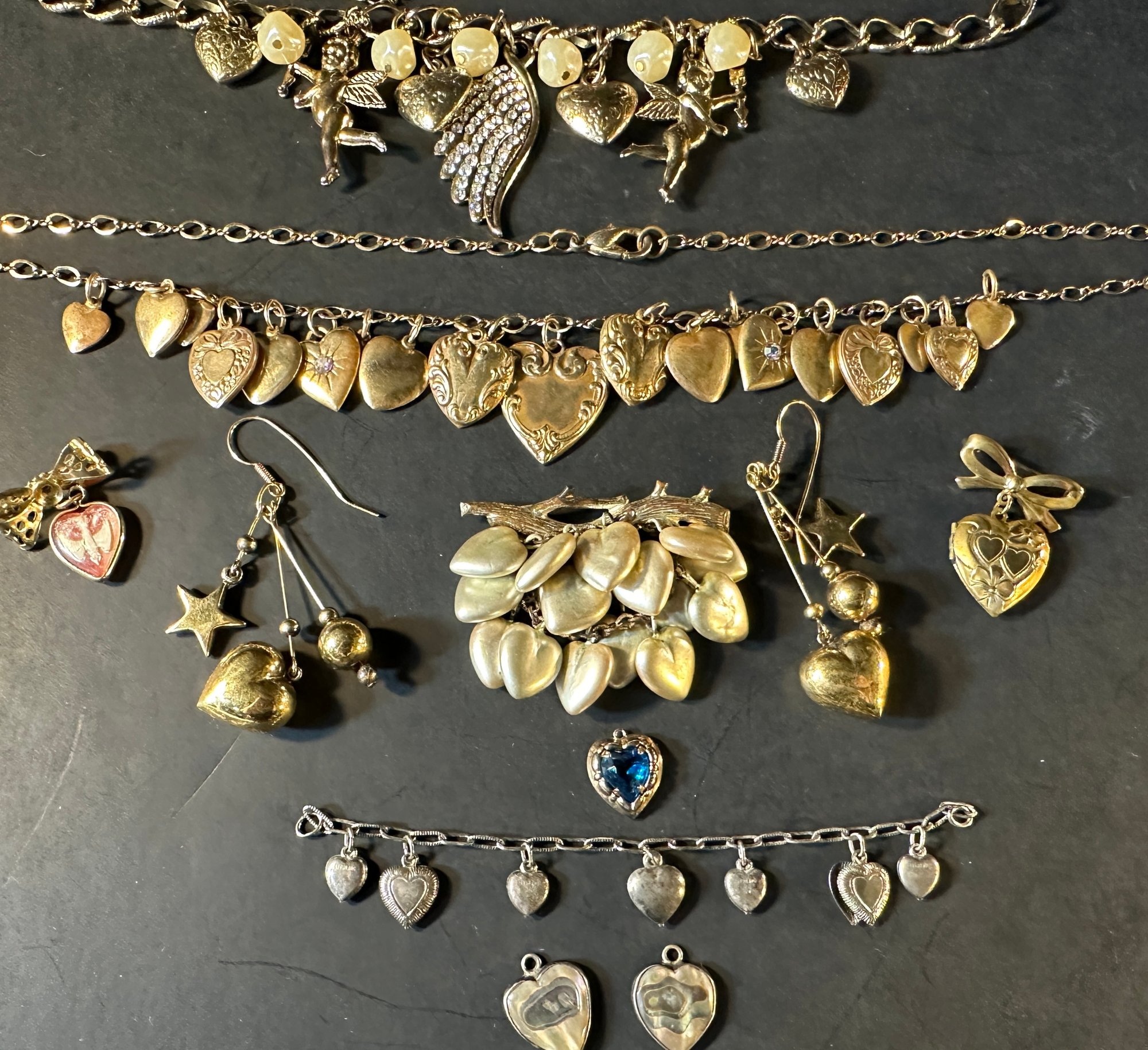 Antique & Vintage GF, Sterling, Brass Heart Jewelry