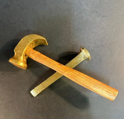 Ceremonial Hammer And Nail W/ Gold Finish
