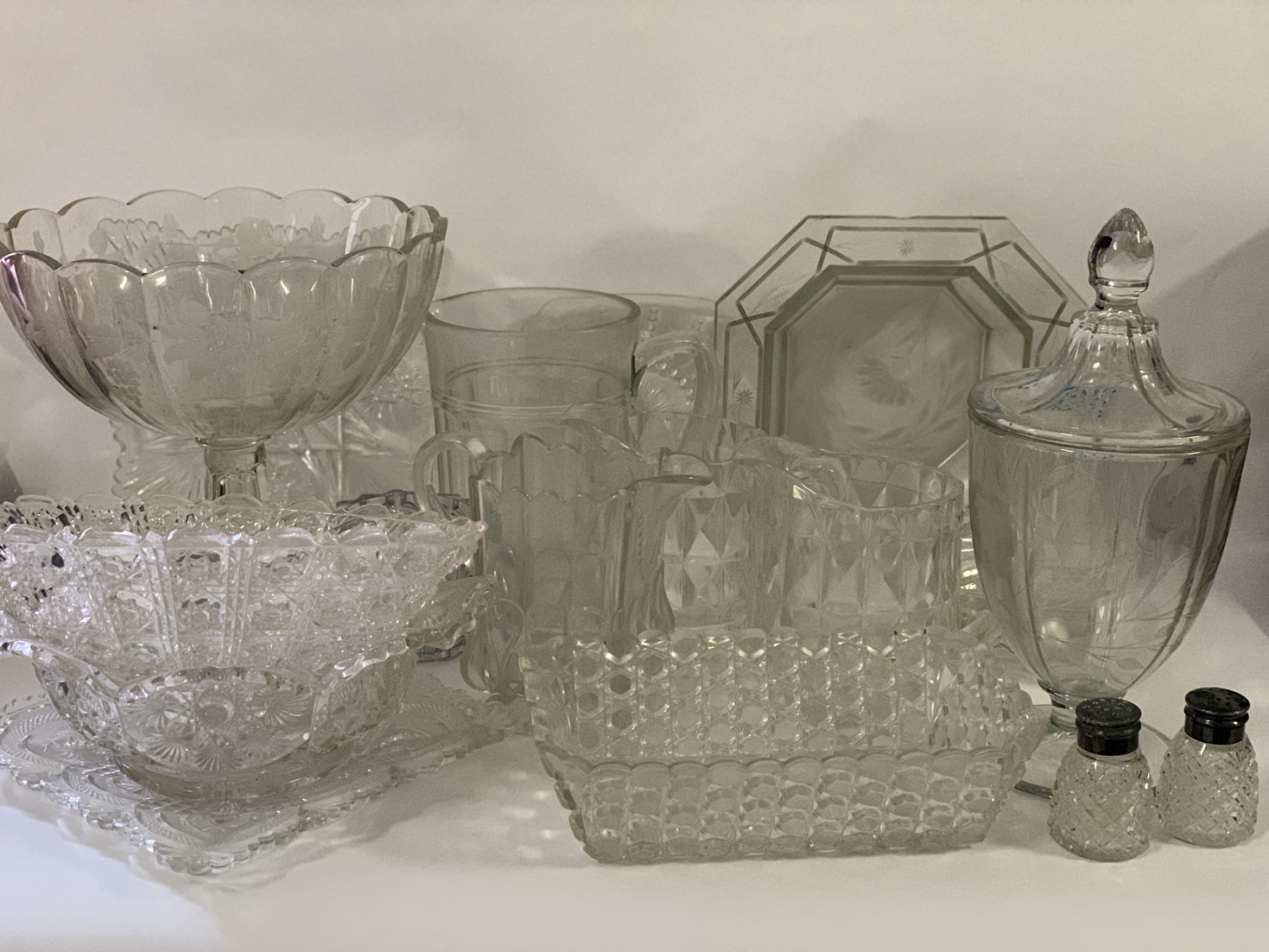 Large group of EAPG with some etched glass, Compote 8 1/2 ", generally good condition, please use pictures
