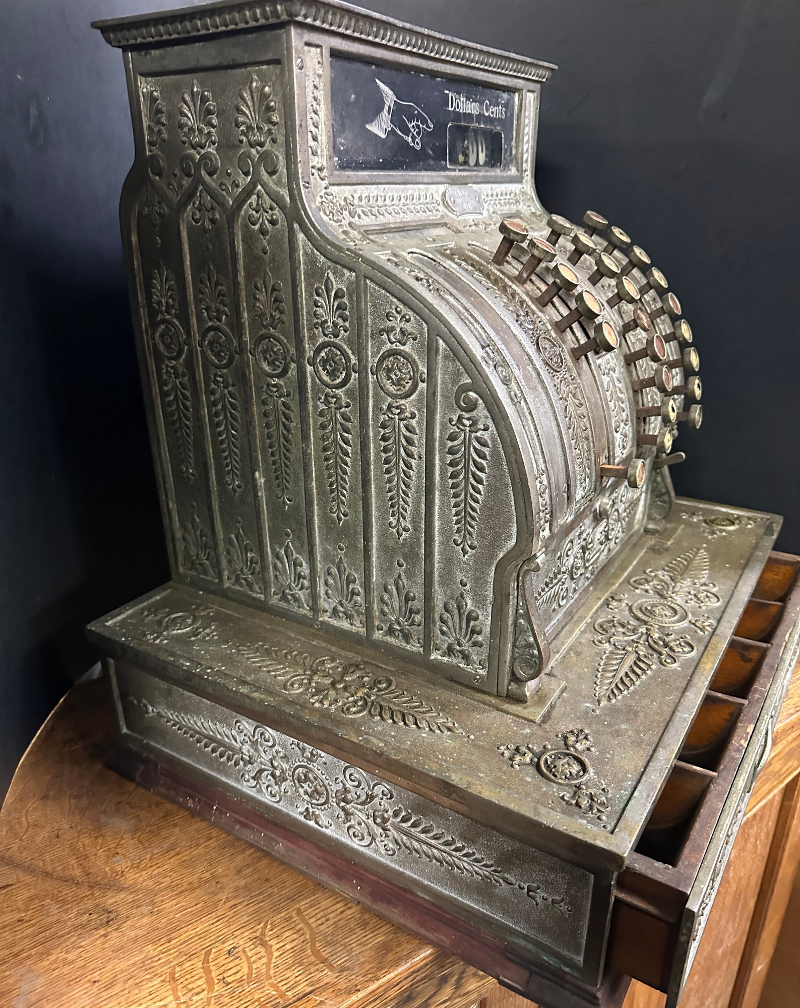 approx 18 1/2 X 15 1/2 inches a few missing key heads needs some restoration