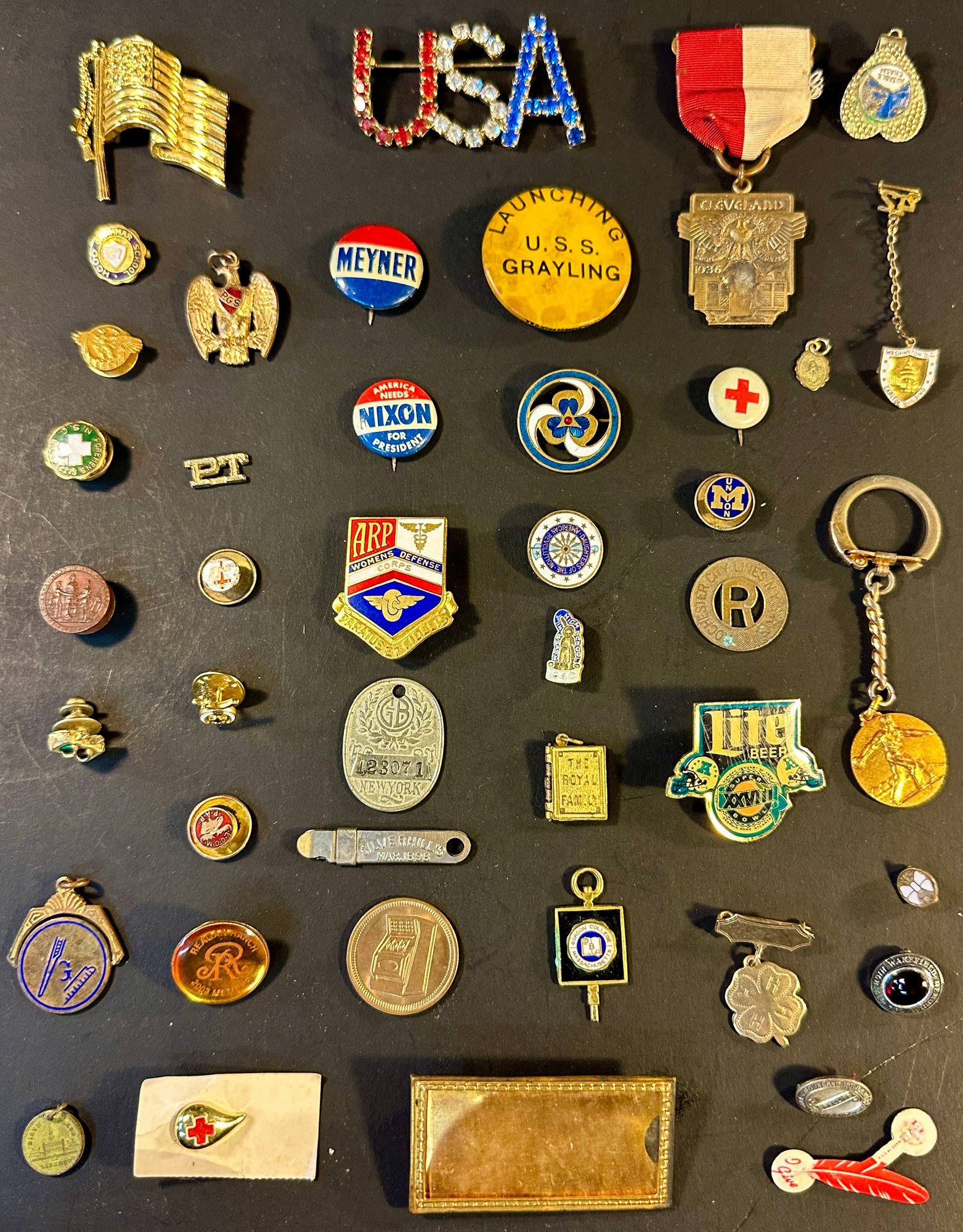 Group Of Pinbacks, Nixon, Keys, Lapel Buttons, Etc.