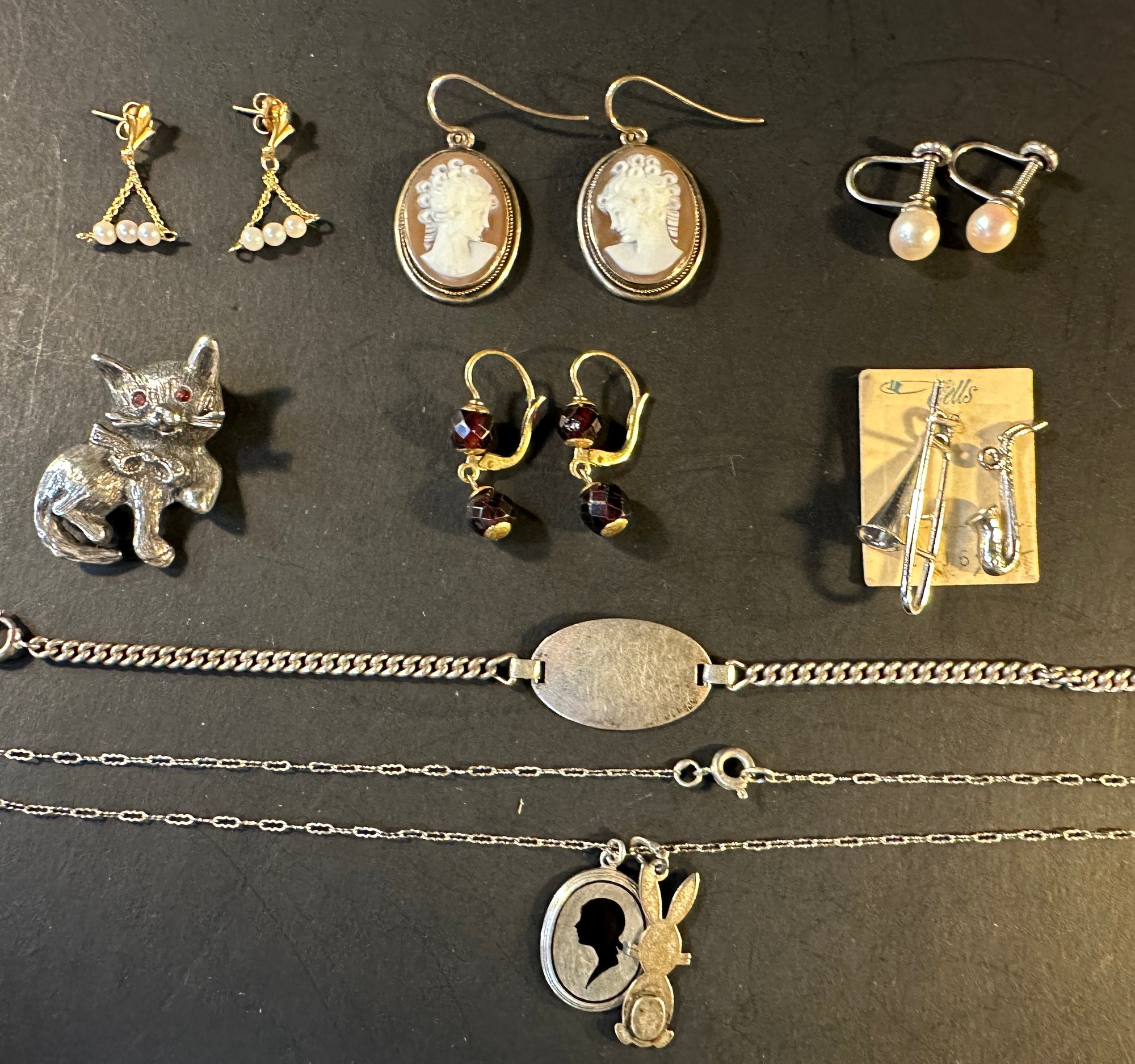 shell cameo, cultured pearls etc.