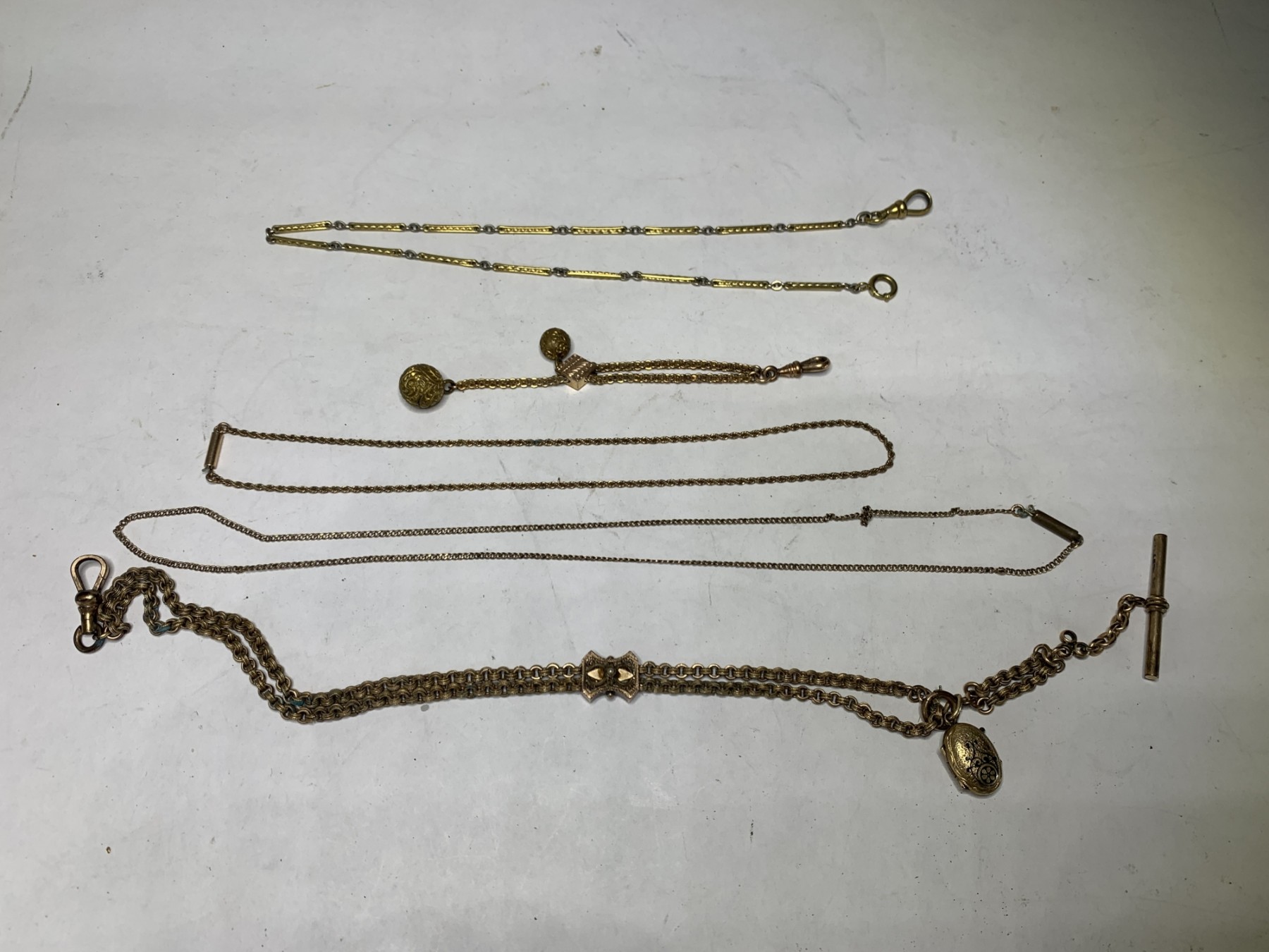 Two Antique Gold Filled Slide Chains W/ Other Jewelry