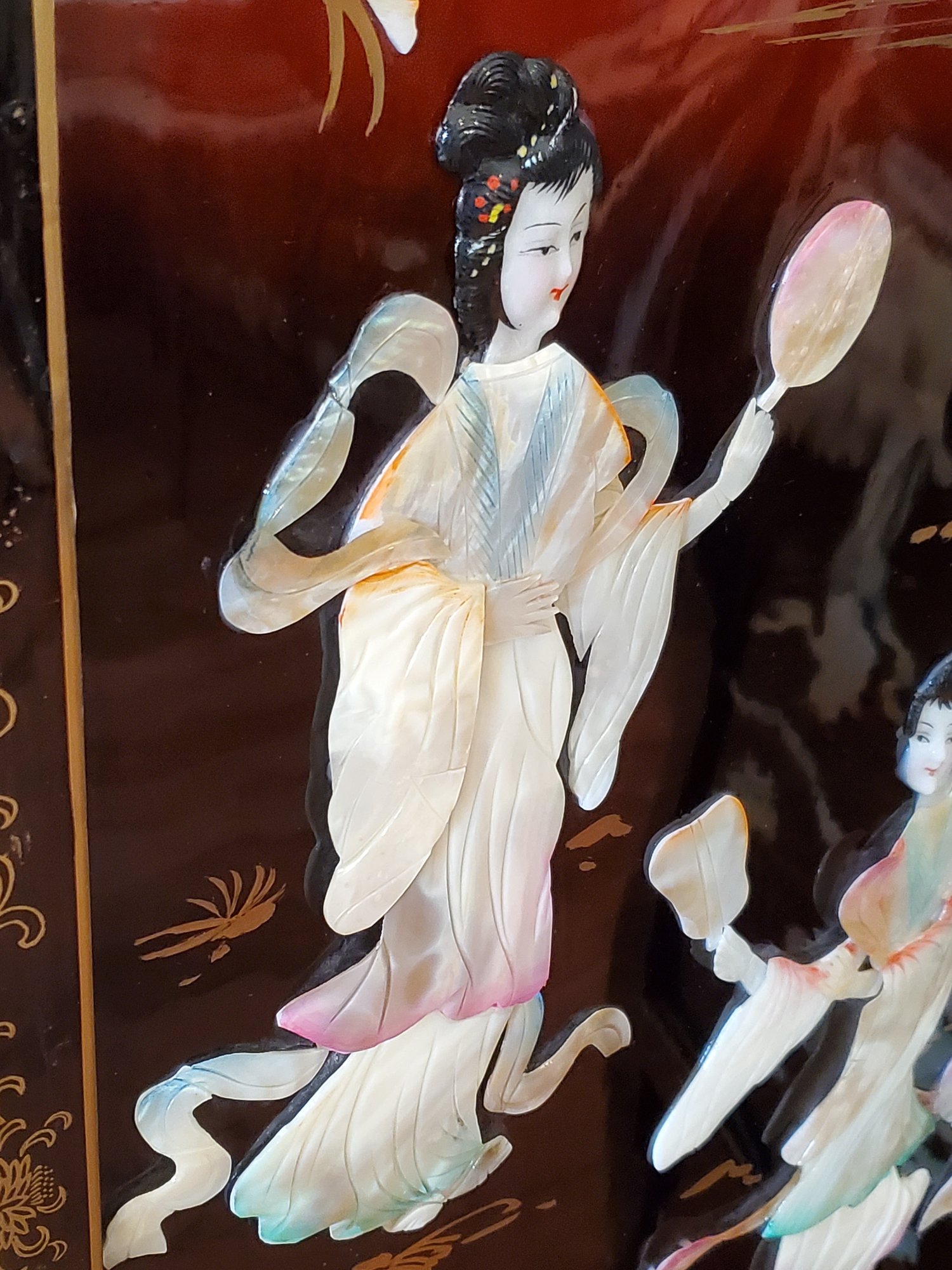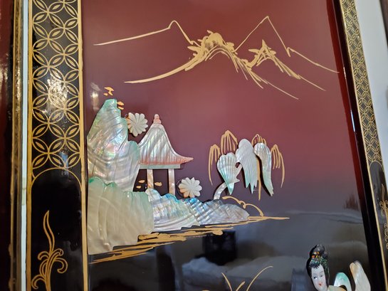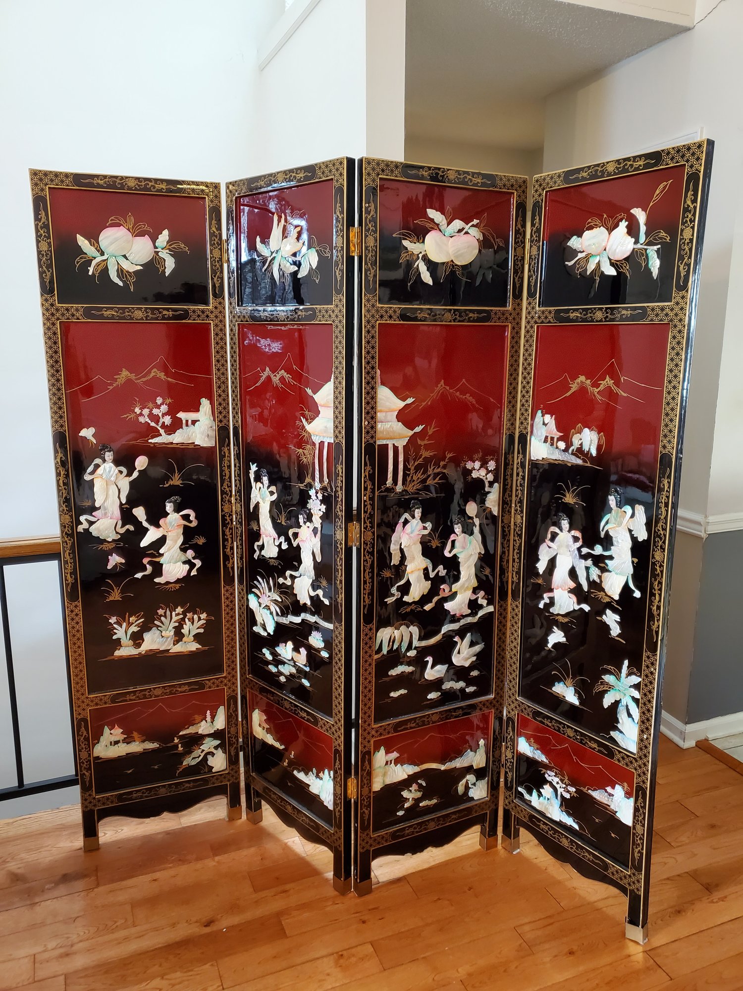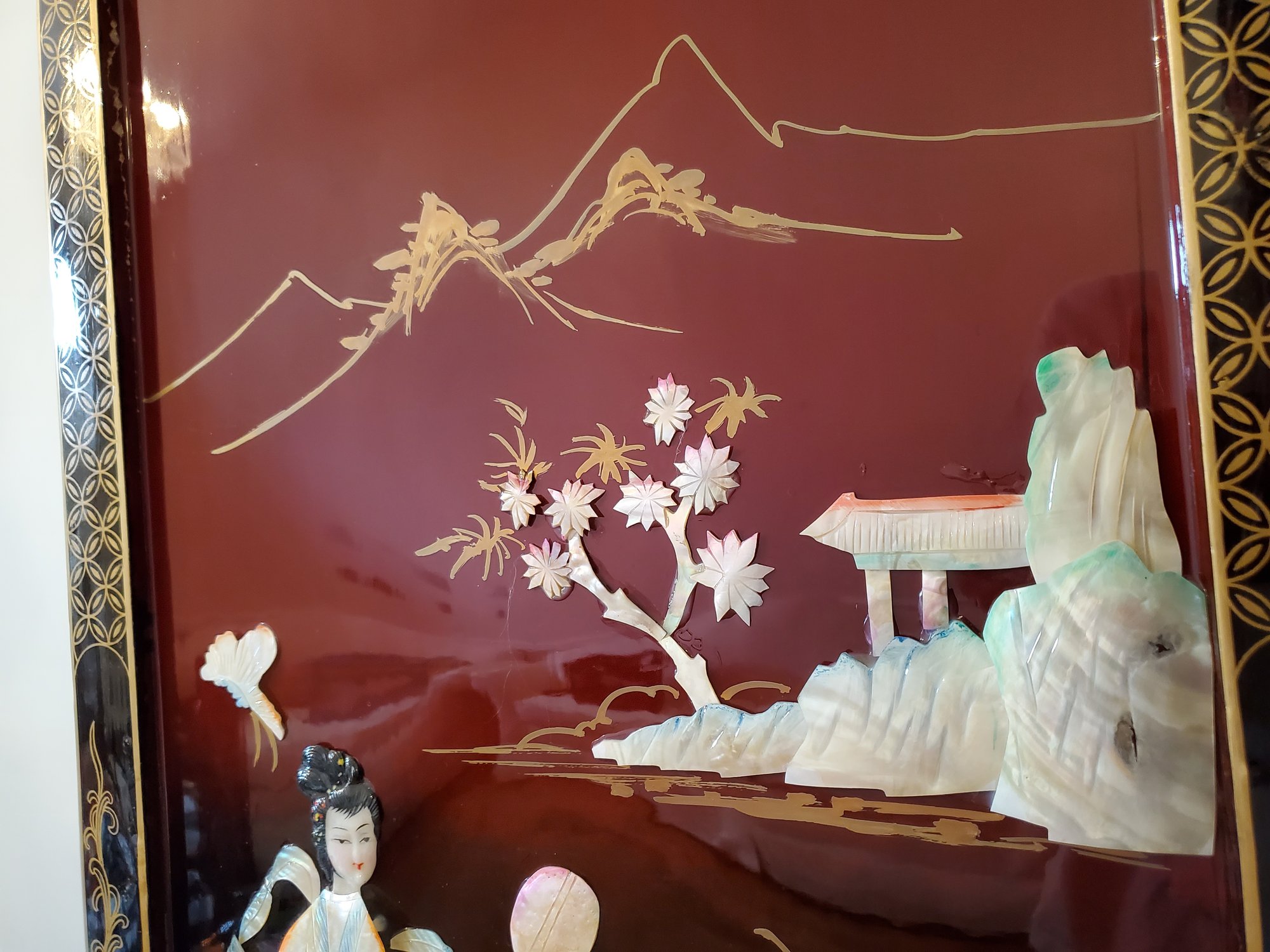 70x72. See photos for damage. Artwork is in excellent condition. Some ware can be seen in photos.