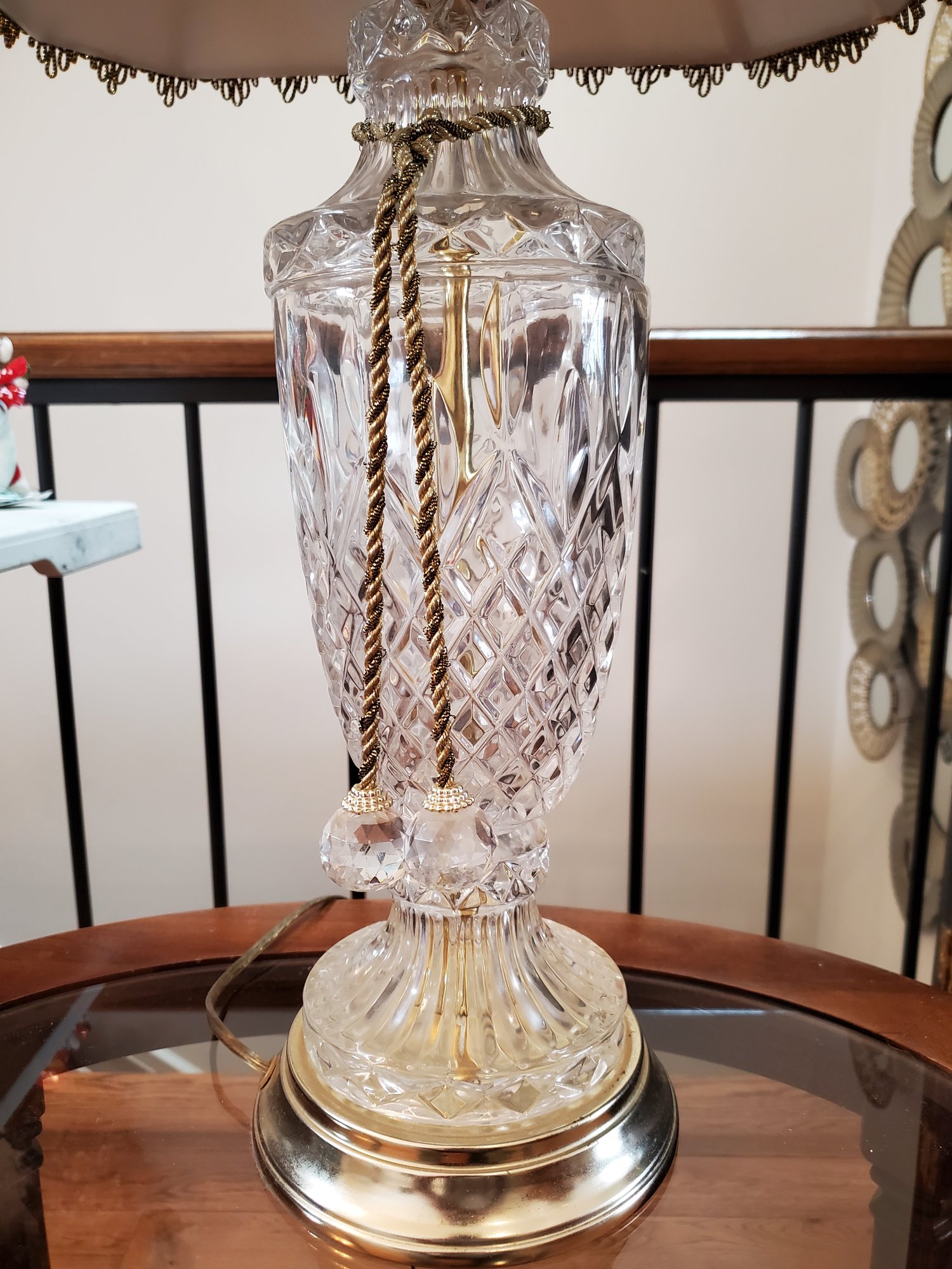 15x15x27. Shade has minor imperfections. Second lamp from pair.