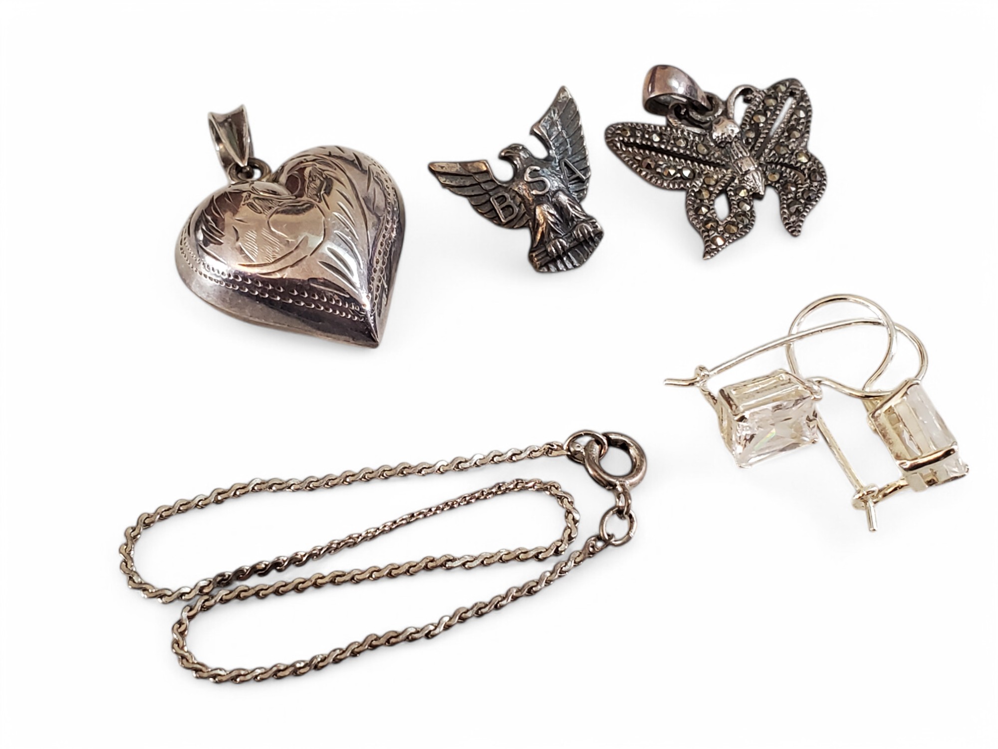 Lot Of Sterling Silver, Earrings, Pendants, Chain