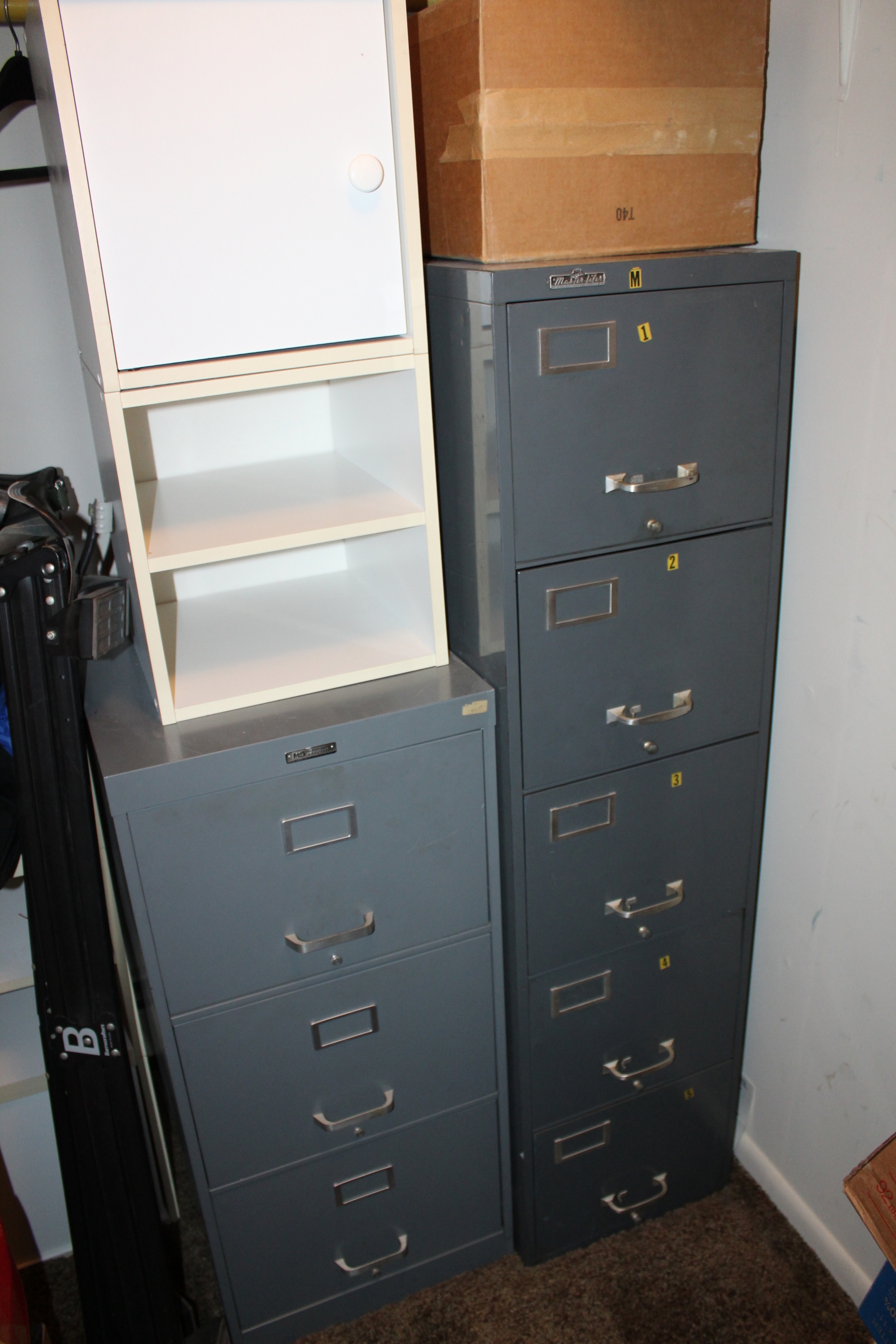 2 Vintage Filing Cabinets & 2 White Cabinets - GREAT STORAGE LOT!!