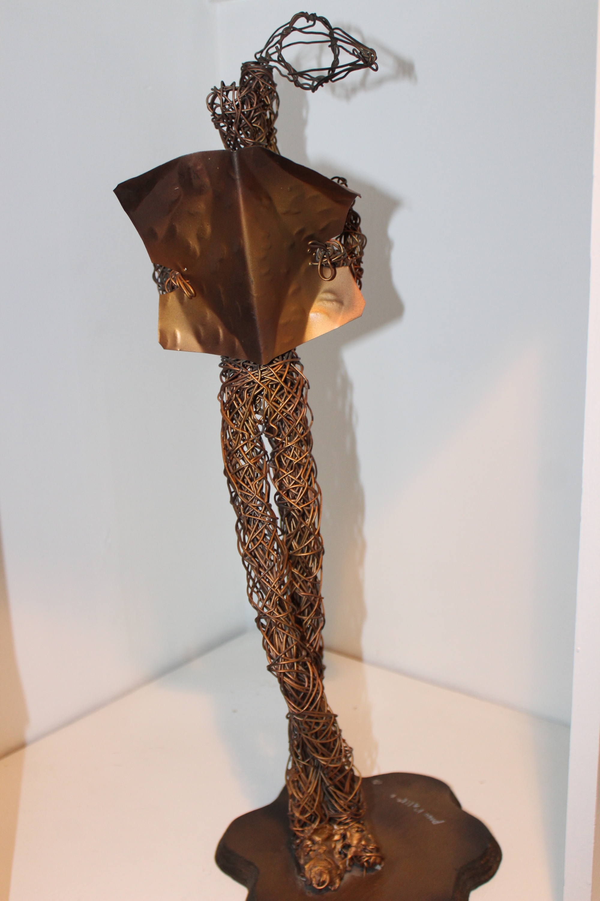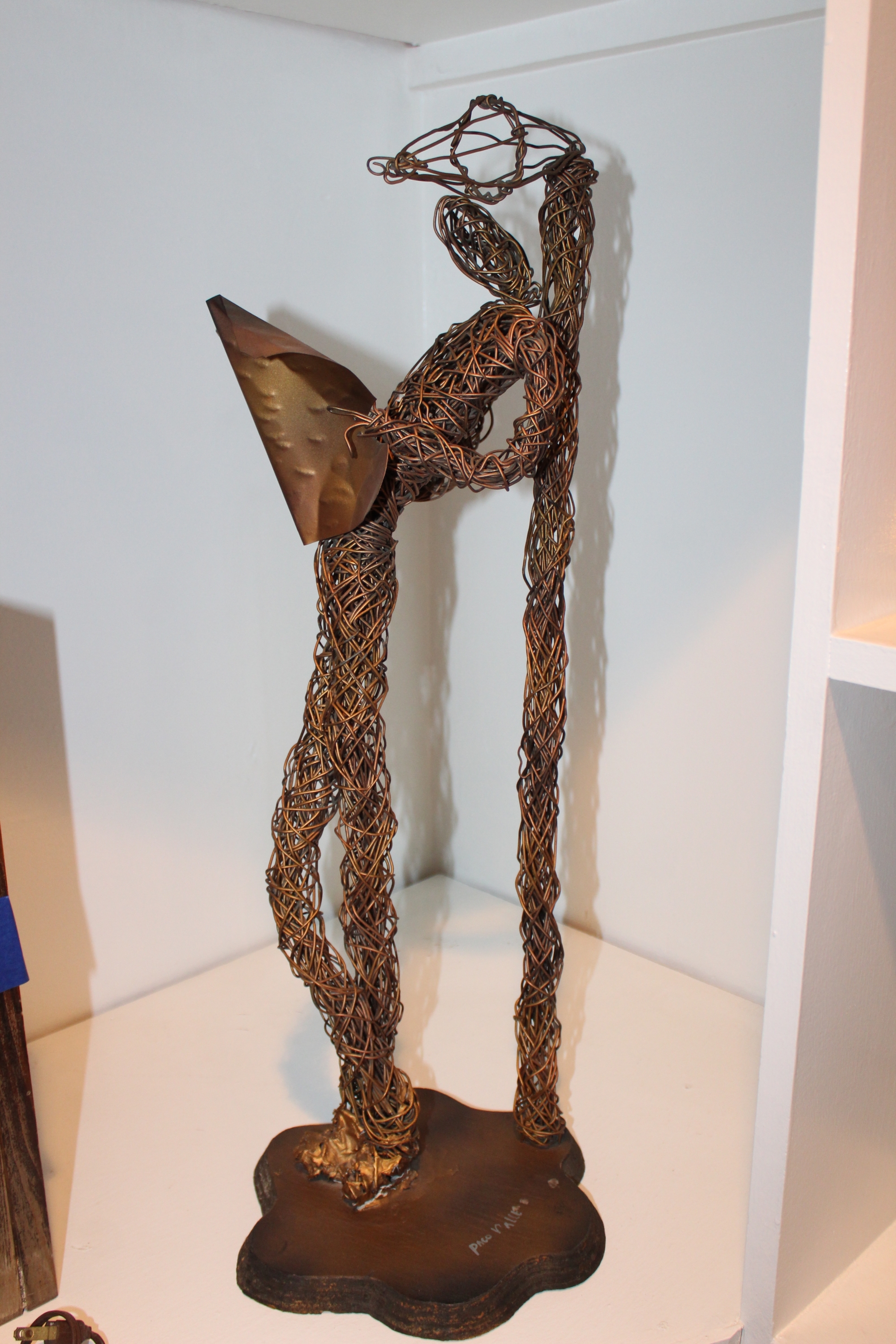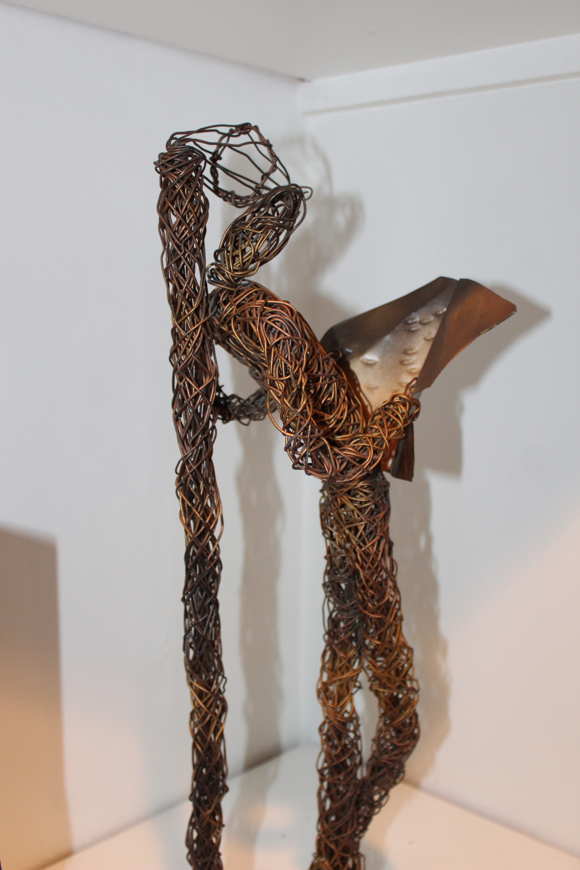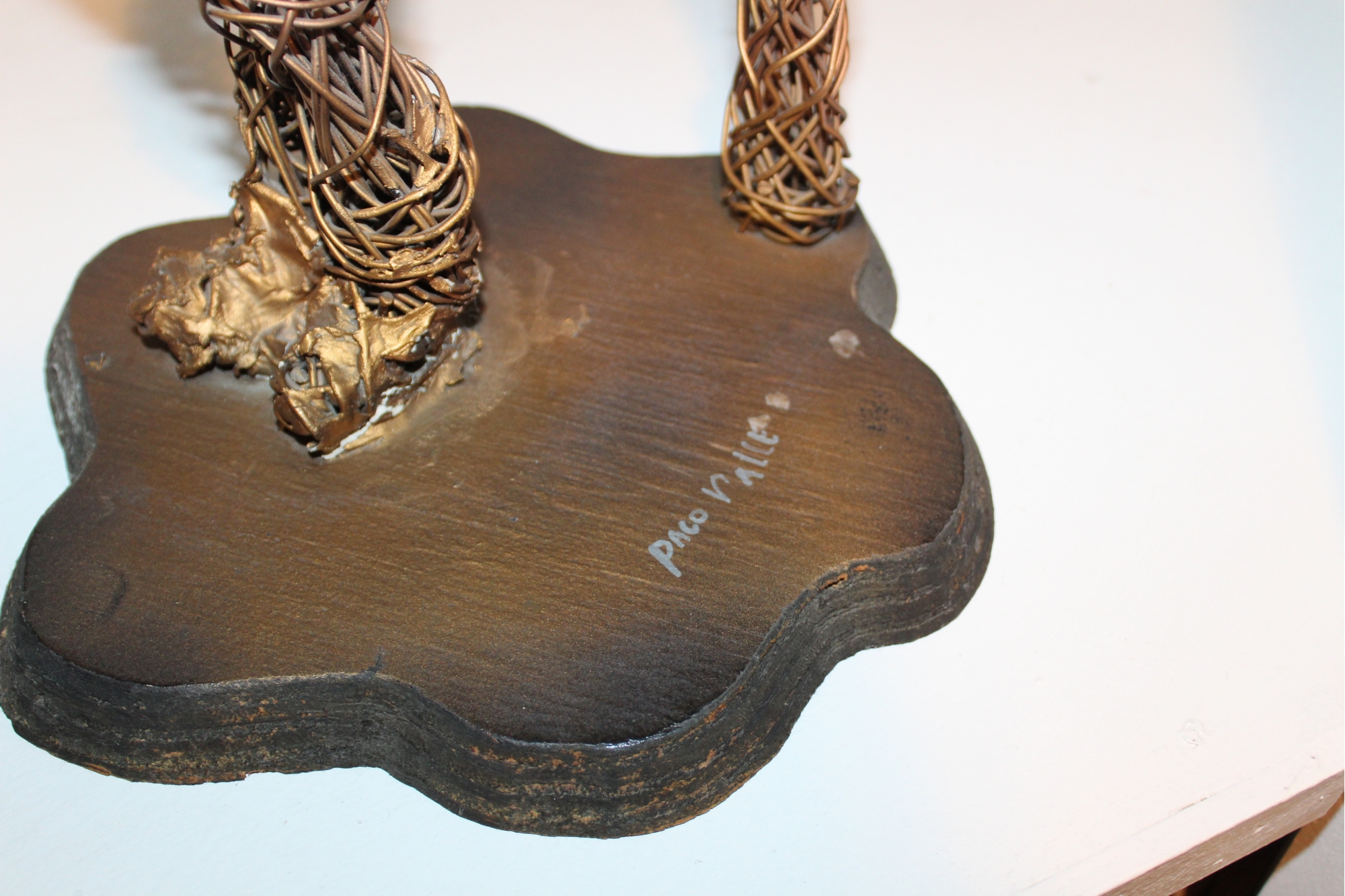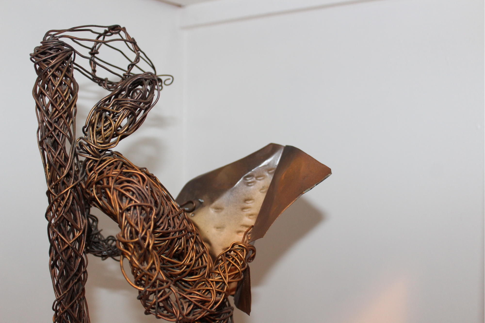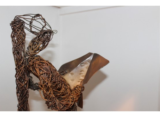 Paco Valle Mid Century Copper Wire Sculpture - Man Reading Newspaper - Signed