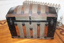 ANTIQUE DOMED CHEST - TIN, METAL & WOOD DESIGN - WITH INSIDE COMPARTMENT - ITEM#27 RM4
