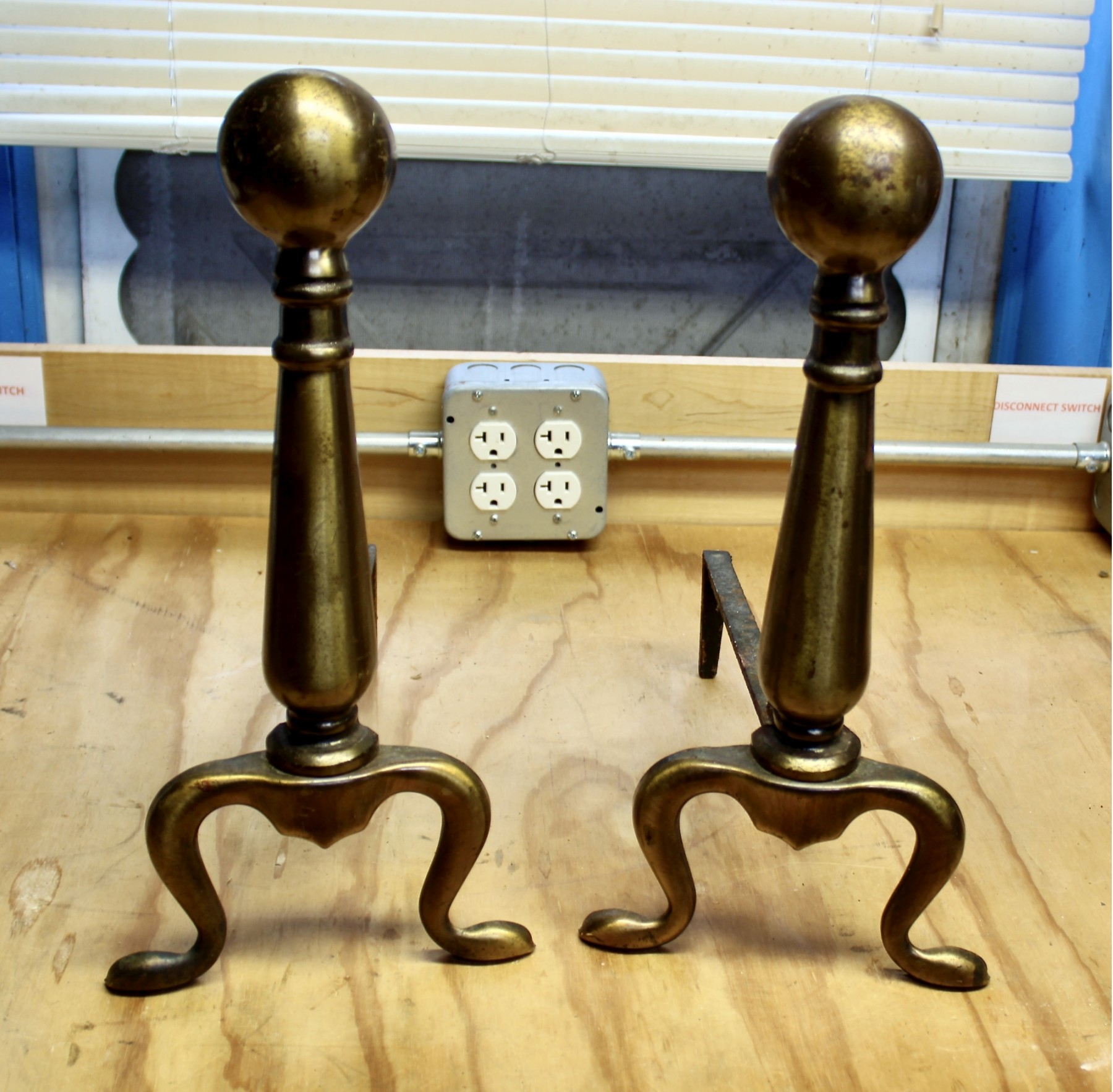 ANTIQUE Fireplace Cast Iron & Brass Andirons - Lot Of 2!!