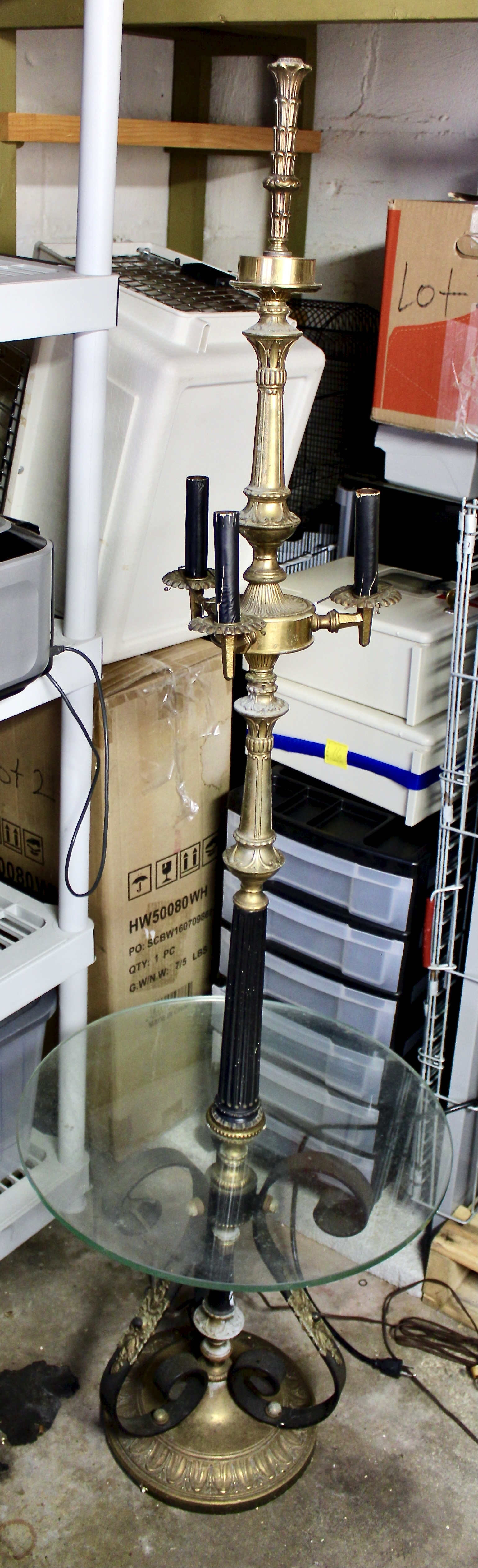 ANTIQUE Glass Lamp Table - Wrought Iron & Brass - BEAUTIFUL!!