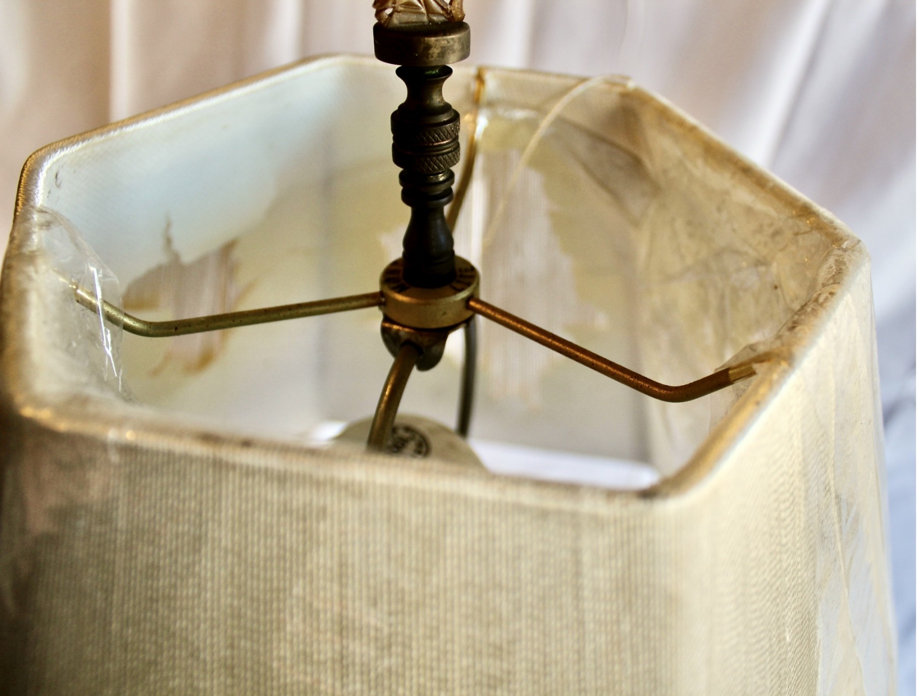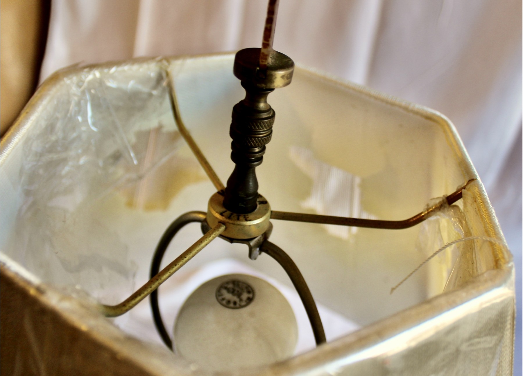 Condition: OK to Good Condition; Works; Lamp missing on of the legs; Inside of shade is not in good condition; Natural scratches on lamp due to years of use; Please see pictures
