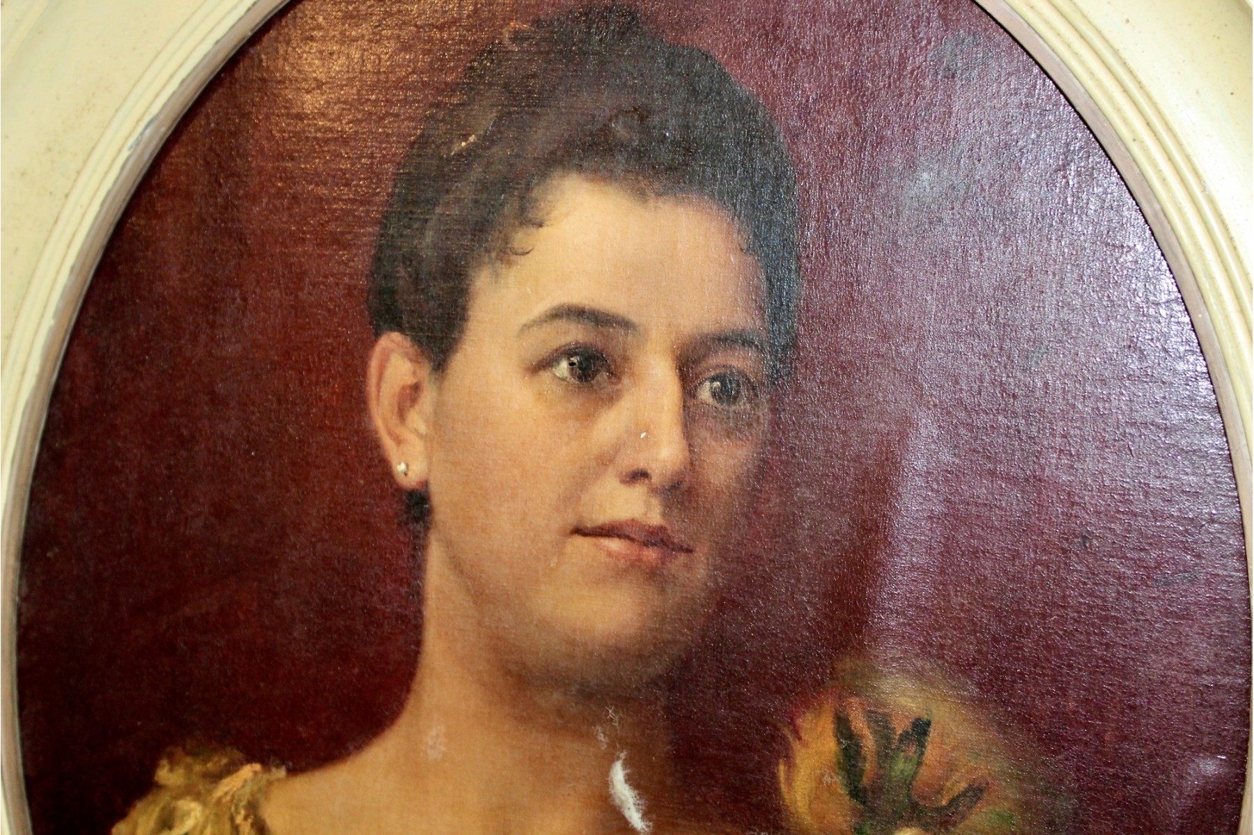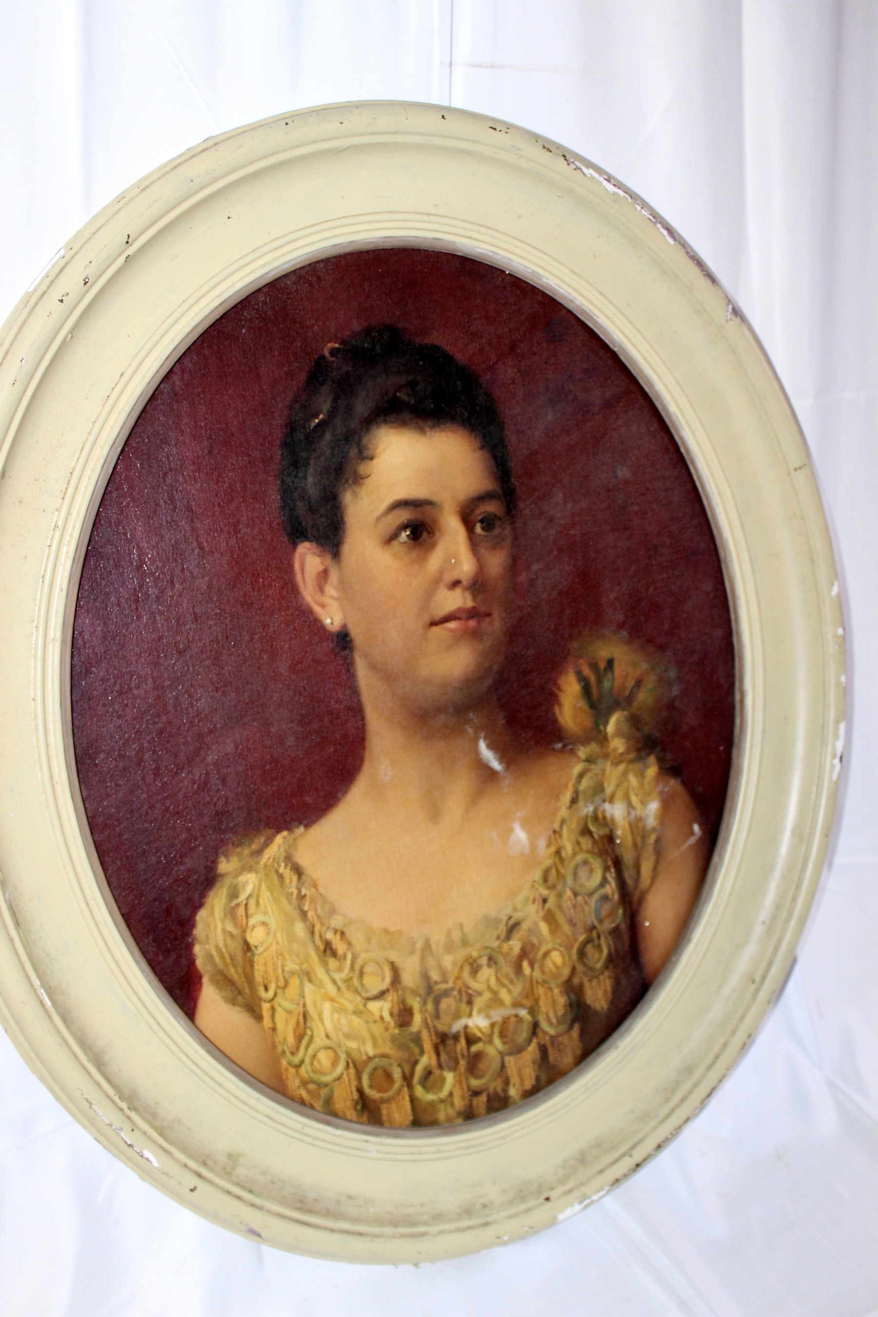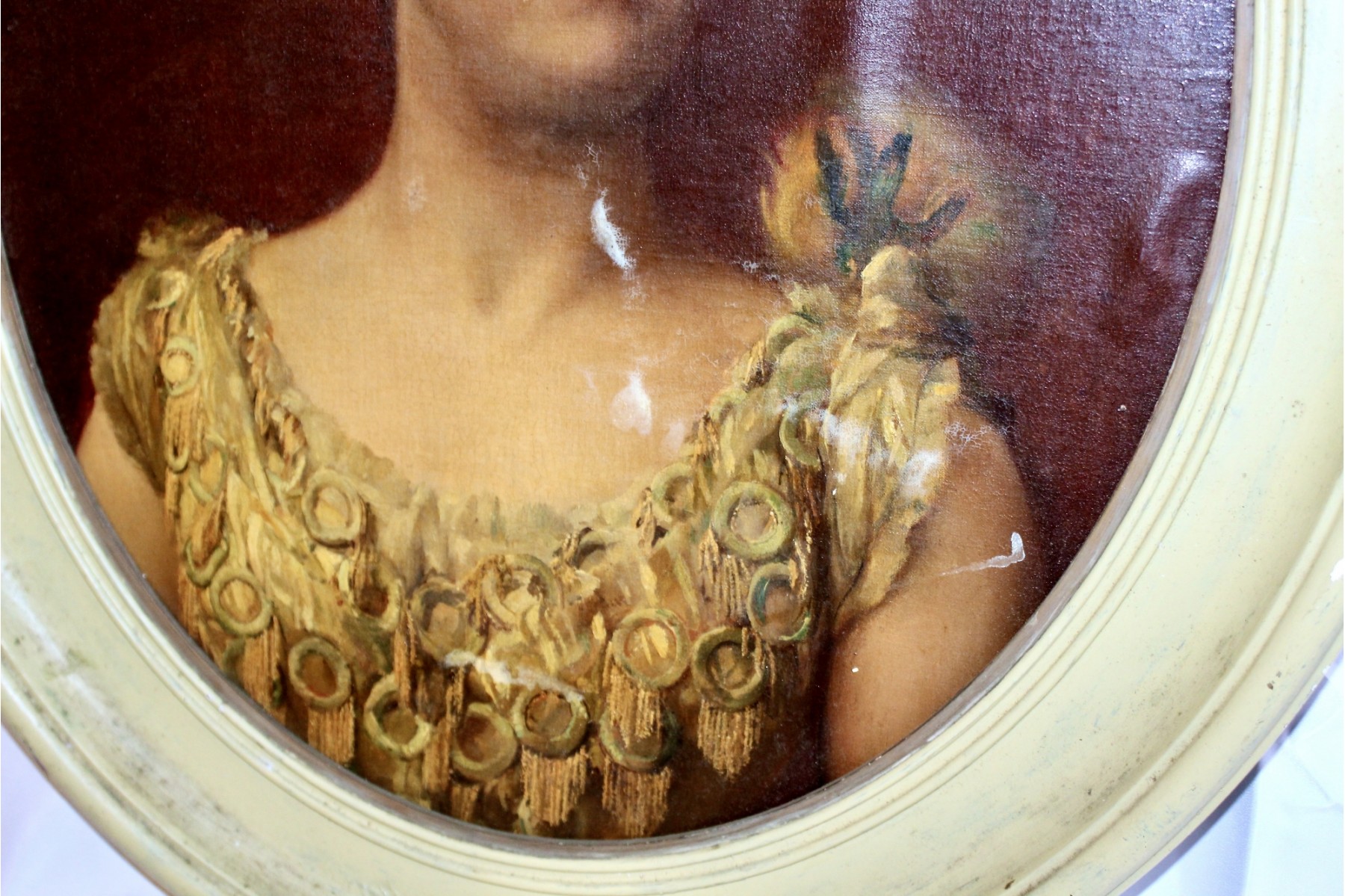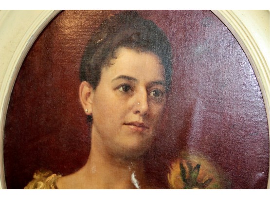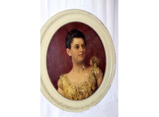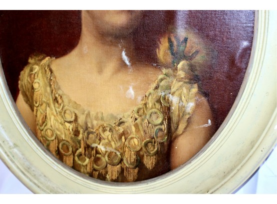 ANTIQUE Oil On Canvas Framed Painting - Cream Frame - RARE DETAIL! Please note frame has some visible cracks due to age & there are some condition issues on the painting. Also, there is no glass holding the painting, please see pictures.