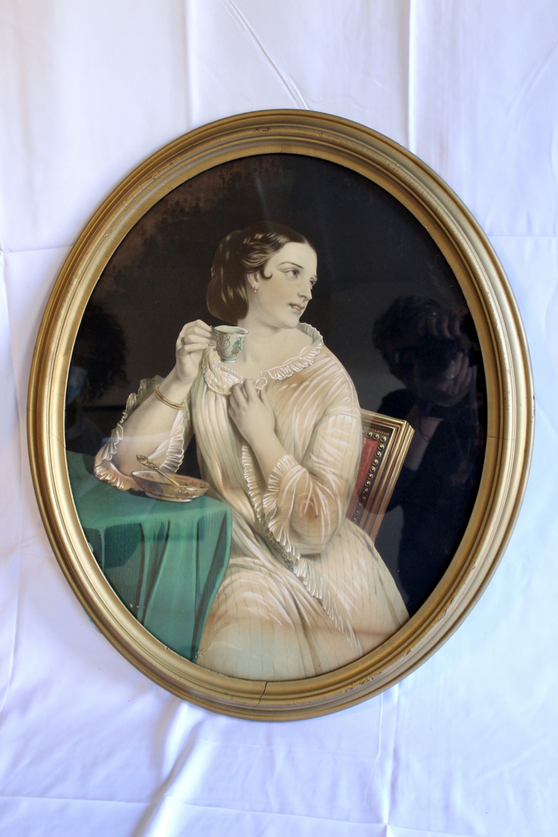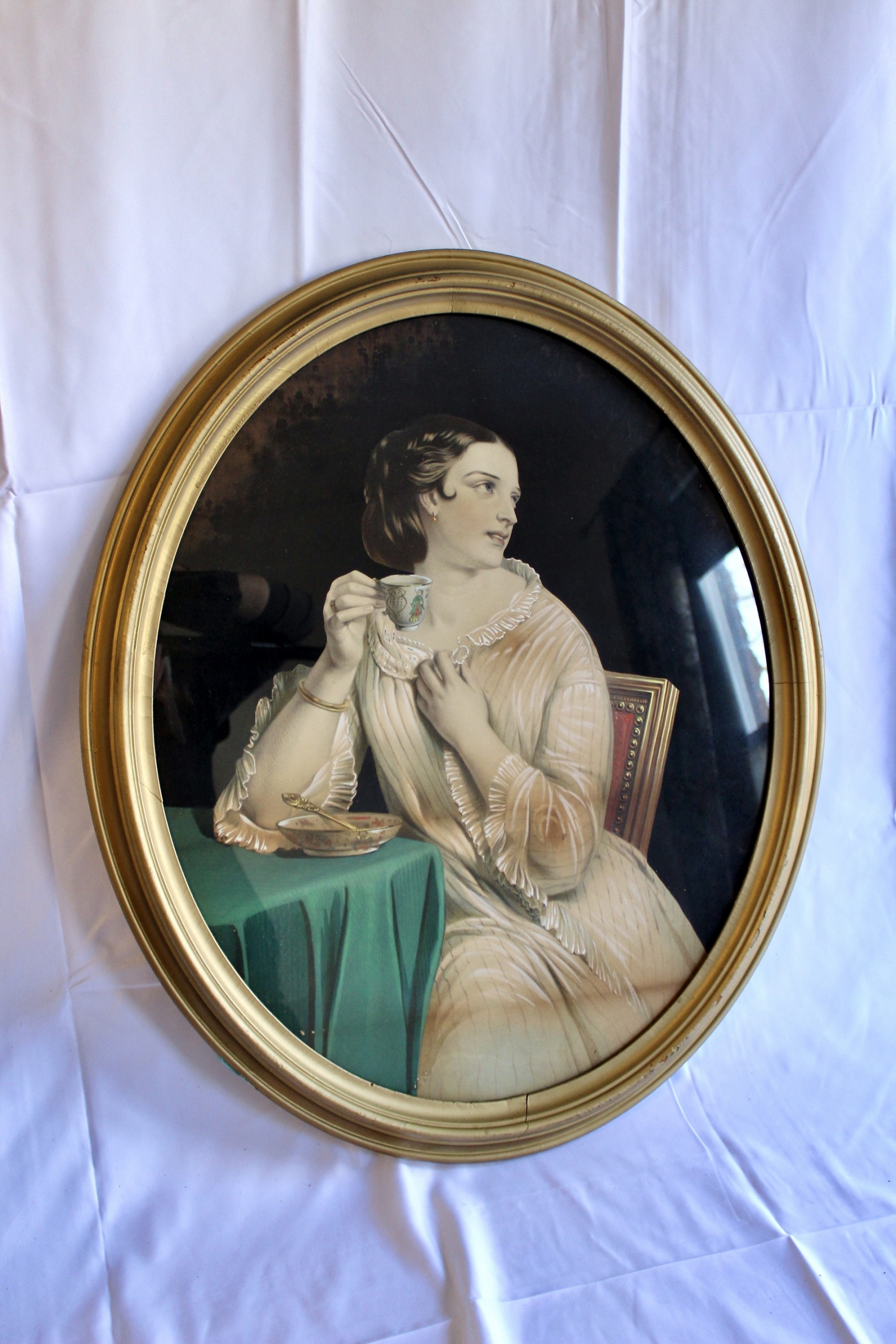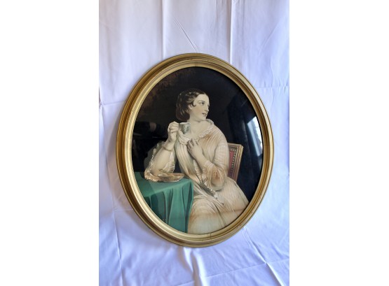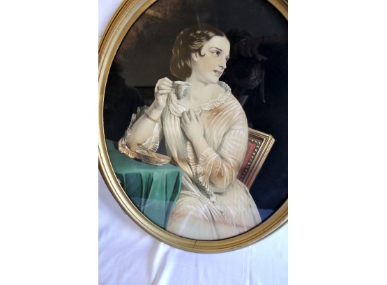 ANTIQUE "Rich Lady" Painting - Gold Framed - RARE DETAIL! Please note gold frame has some visible cracks due to age, please see pictures.
