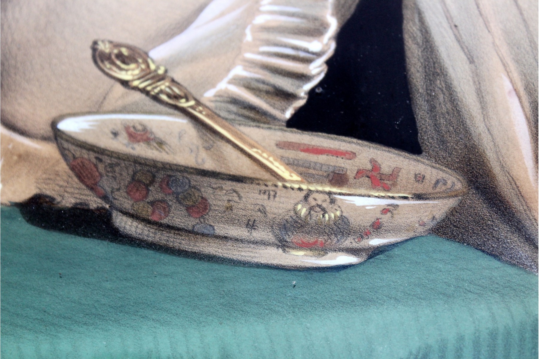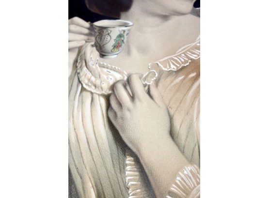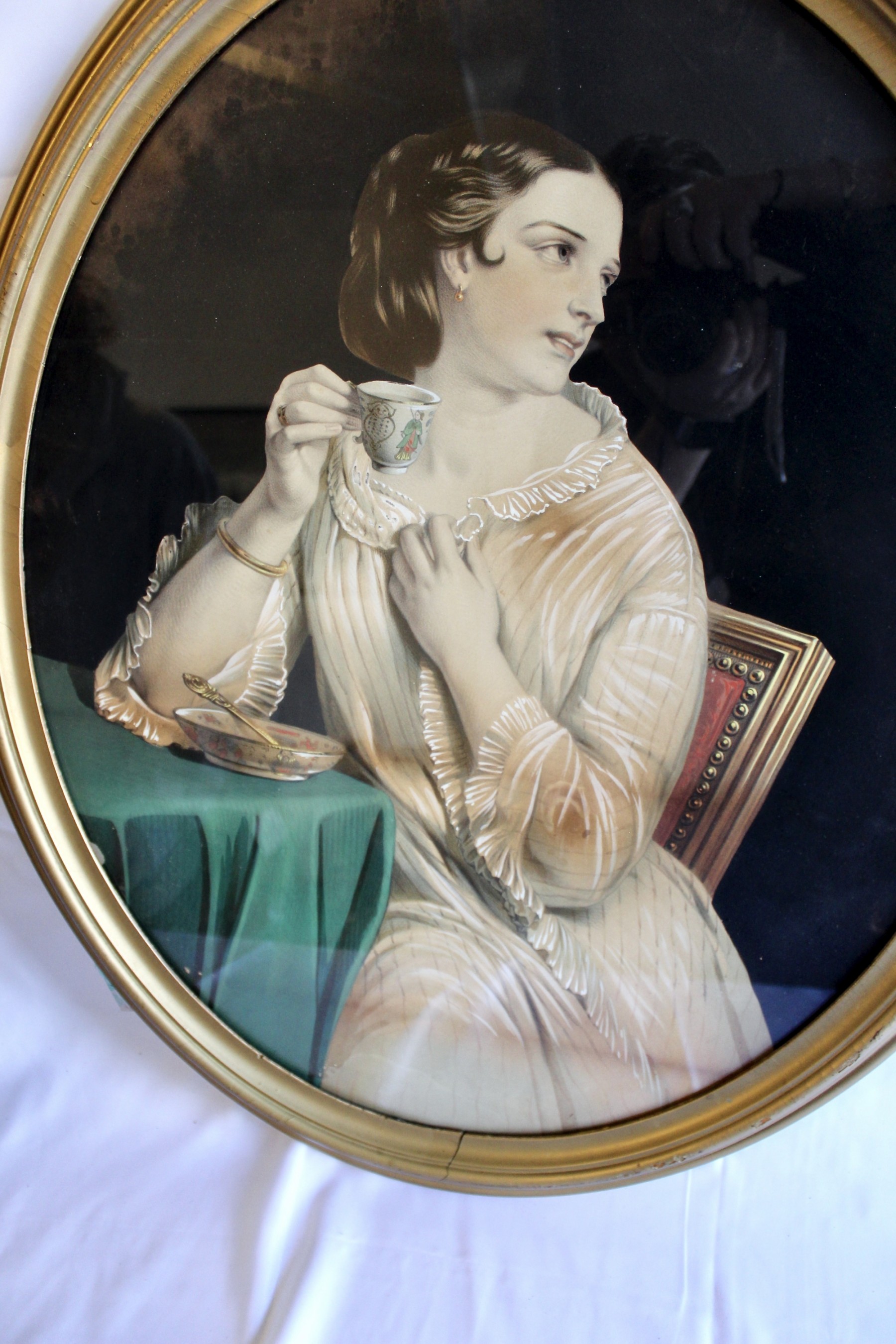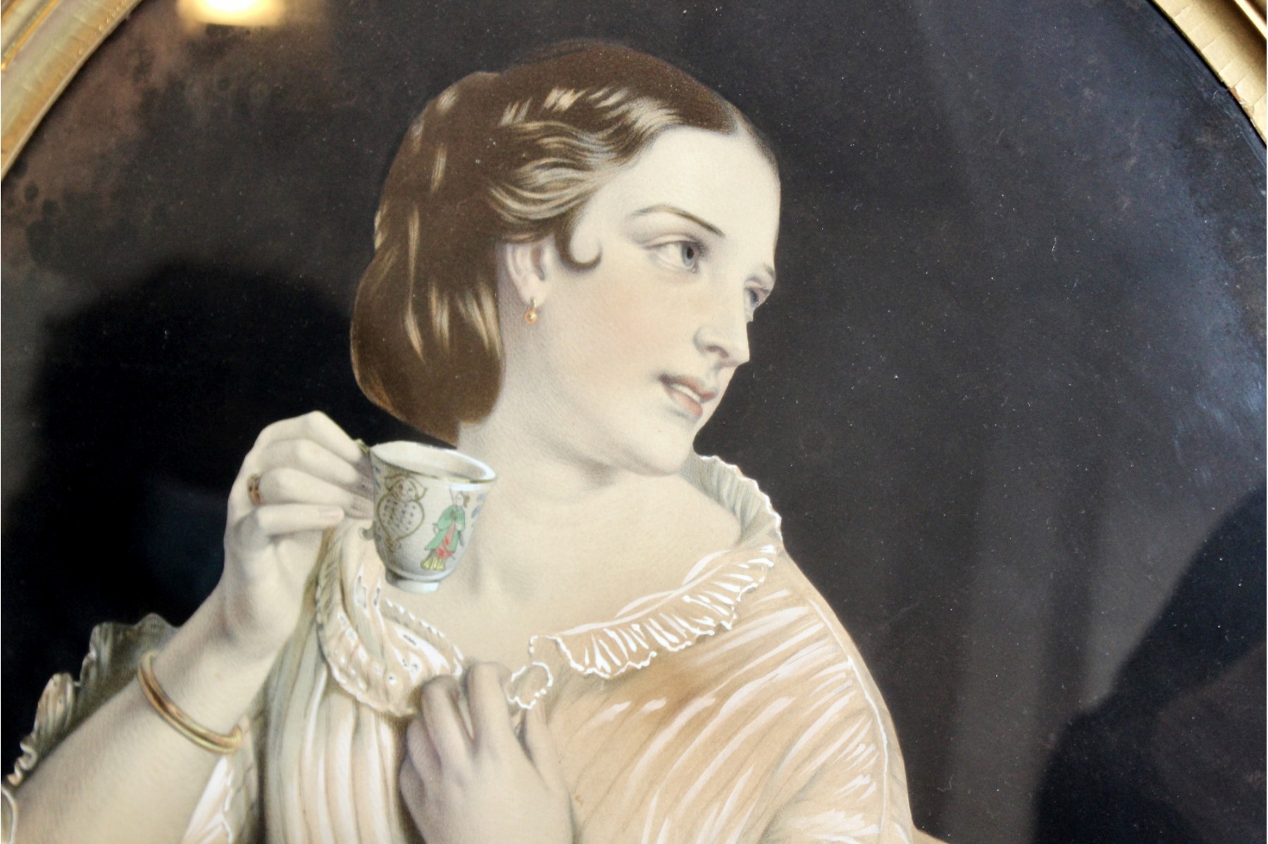 ANTIQUE "Rich Lady" Painting - Gold Framed - RARE DETAIL! Please note gold frame has some visible cracks due to age, please see pictures.