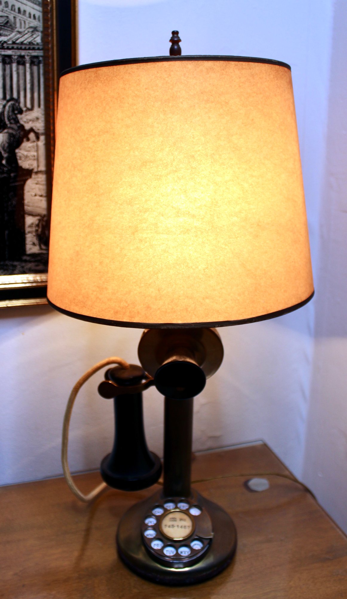 Unique Antique Telephone Lamp with Original Cables.