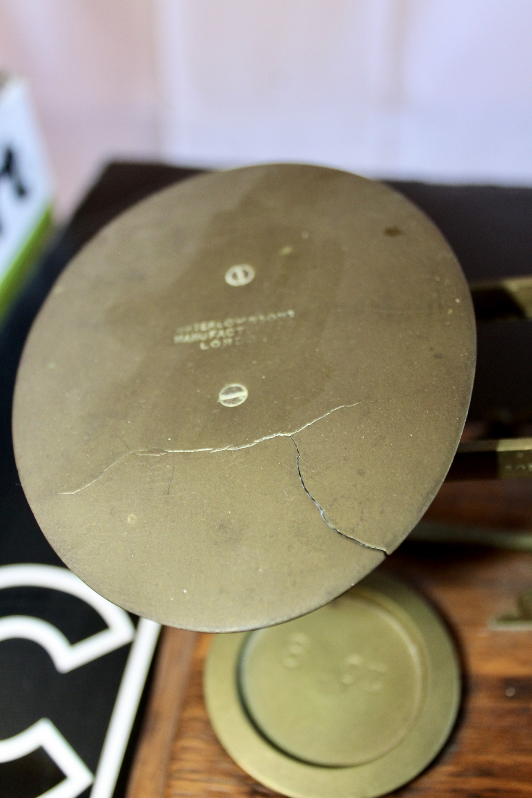 ANTIQUE WATERLOW & SONS SCALE - Made In London! Please note there is a crack in the plate, please see pictures.
