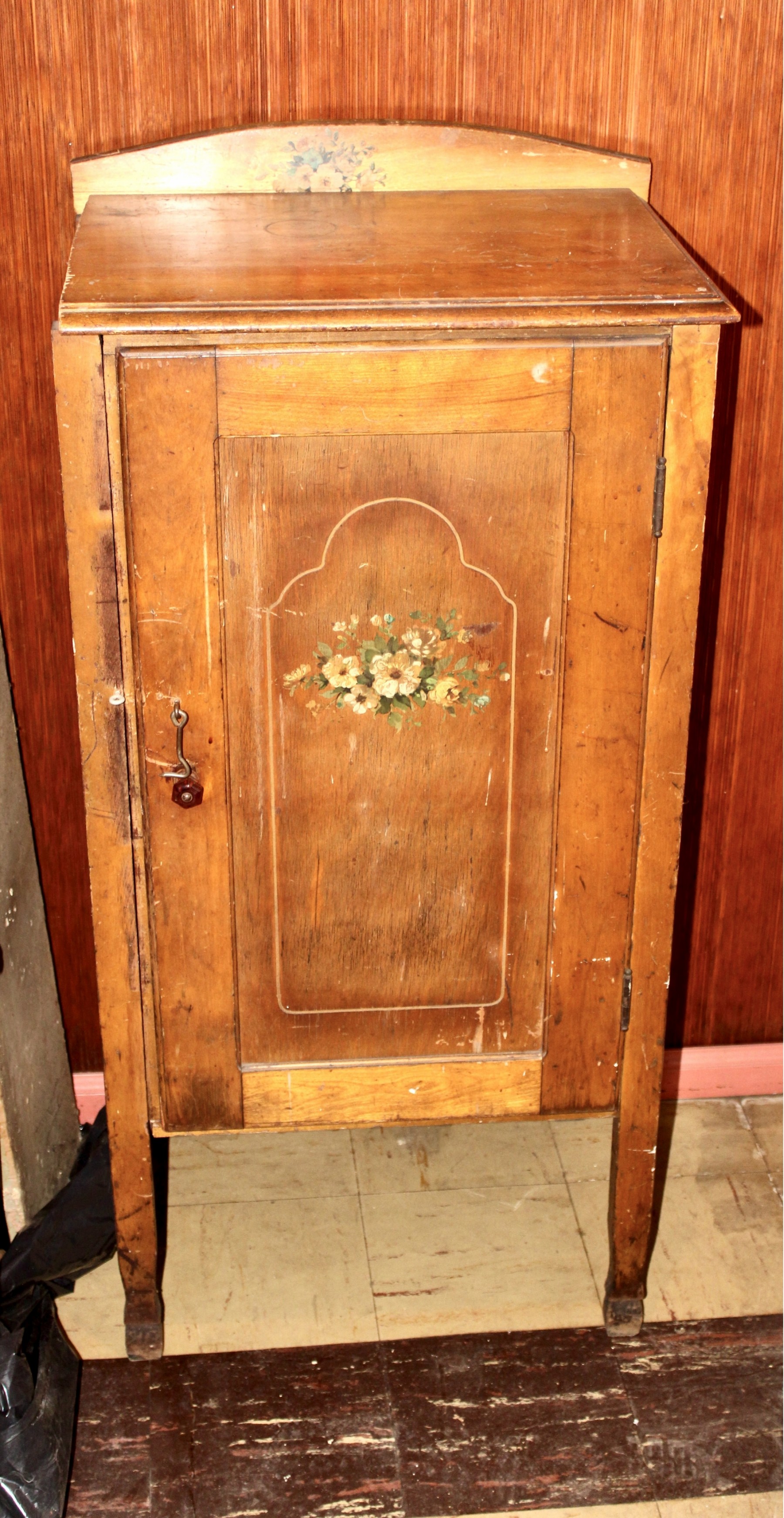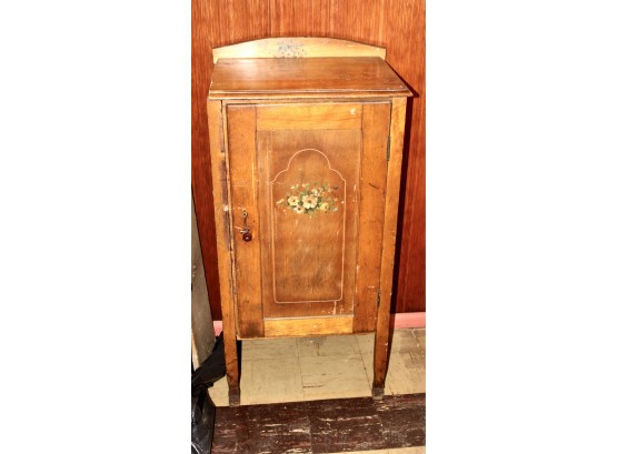 ANTIQUE WOODEN CABINET - HAND PAINTED FLOWER DETAIL!!
