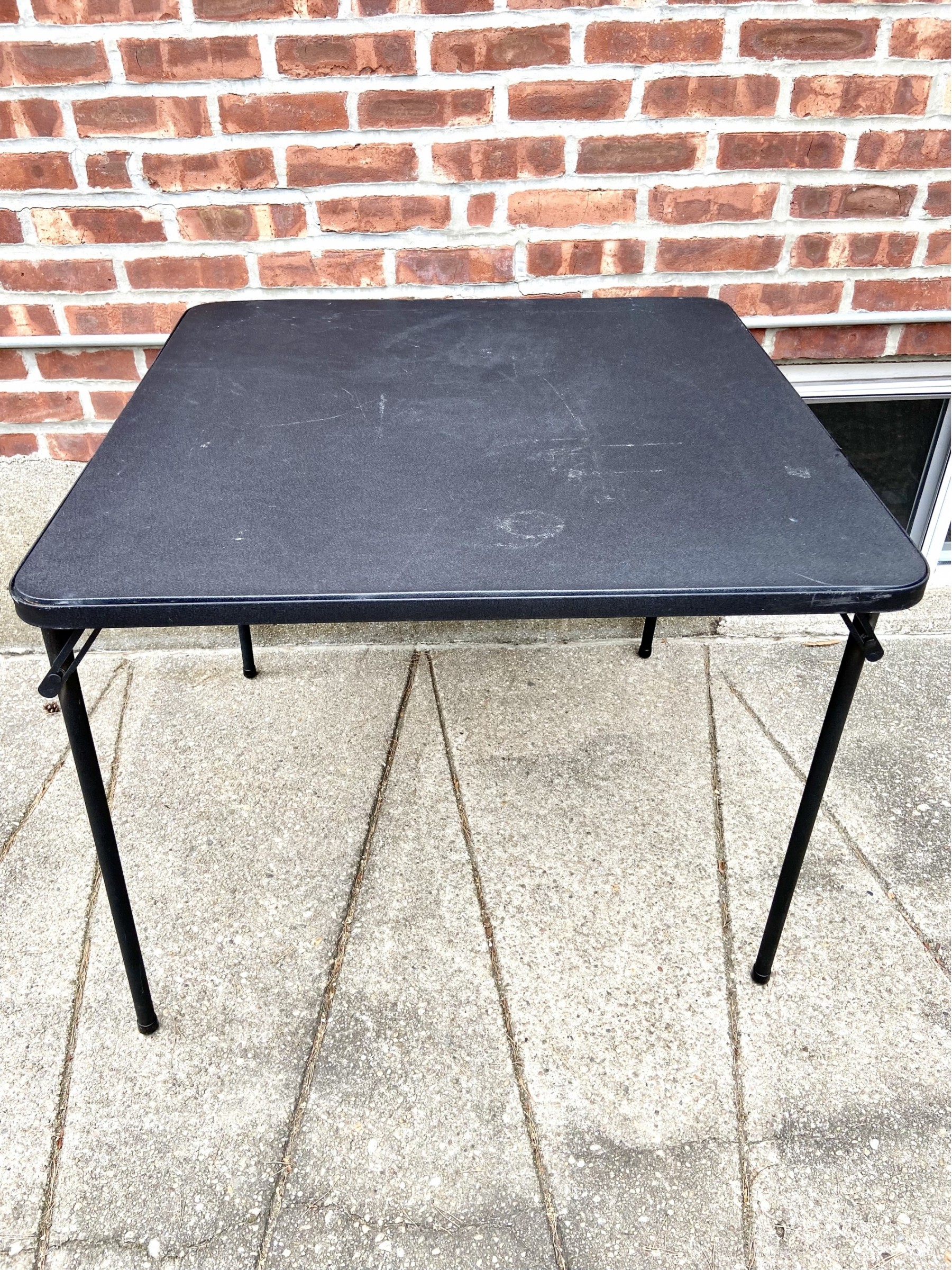 Black Folding Card Table!! Table has some stains on tops of table due to years of use, please see pictures.