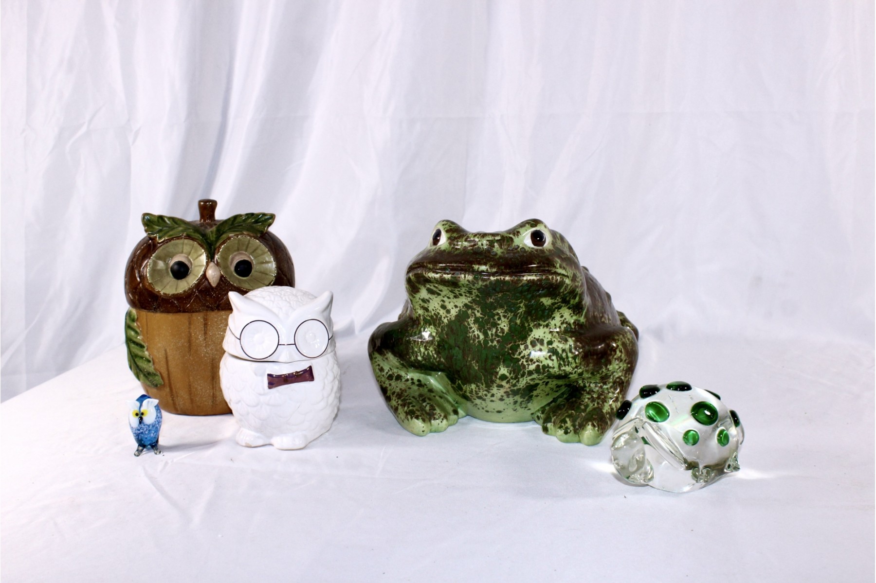 CERAMIC FROG PLANTER - OWLS - GLASS TURTLE PAPERWEIGHT - GREAT DECOR LOT!!