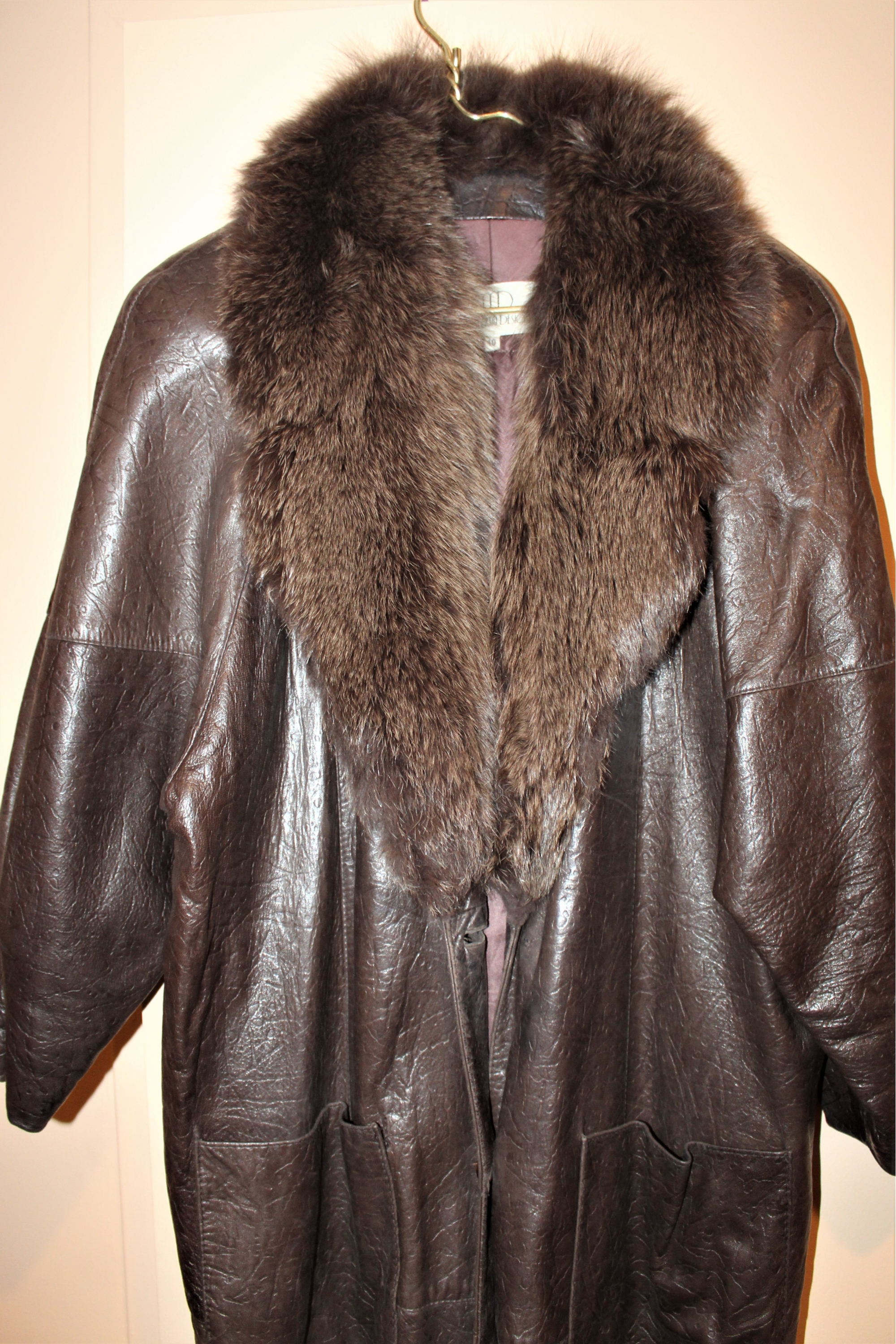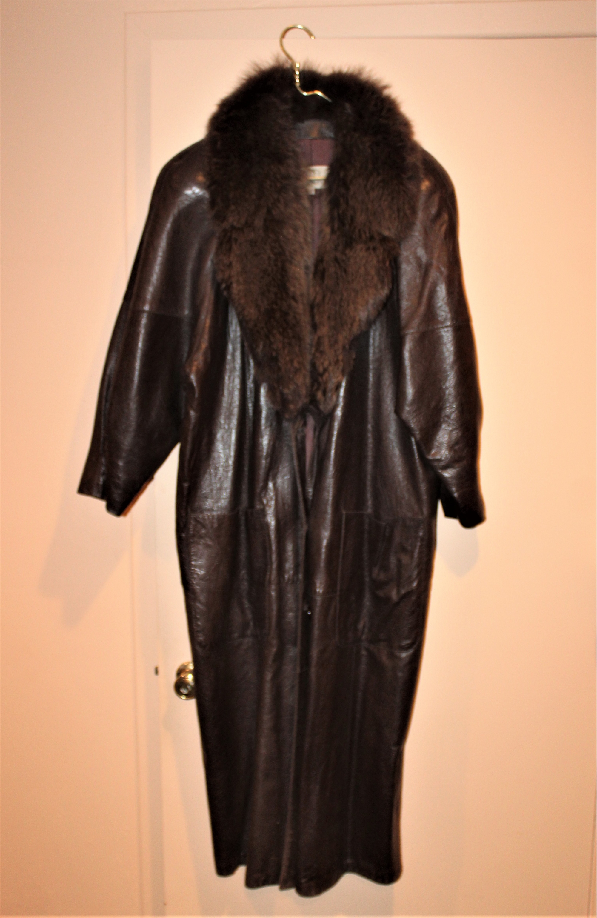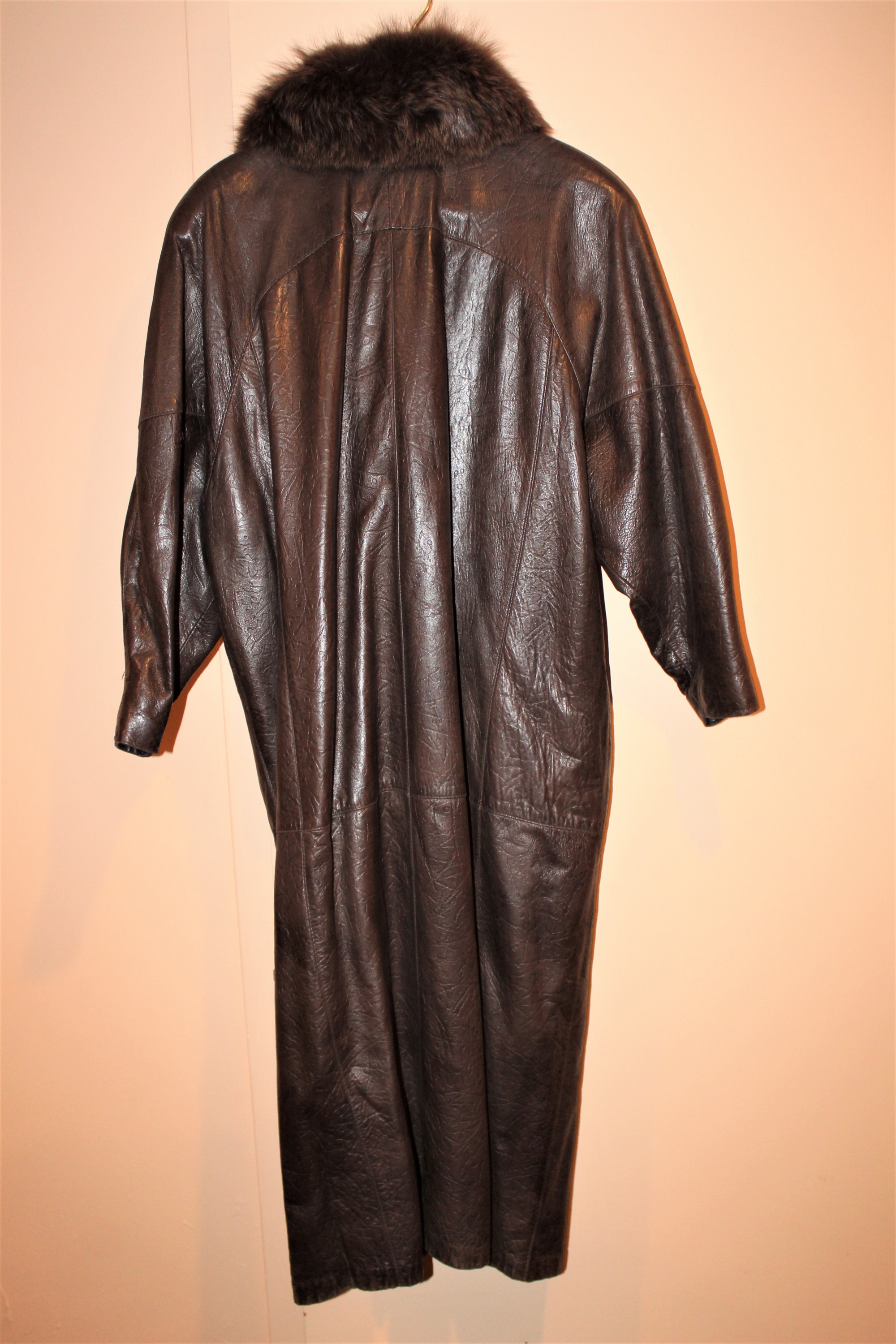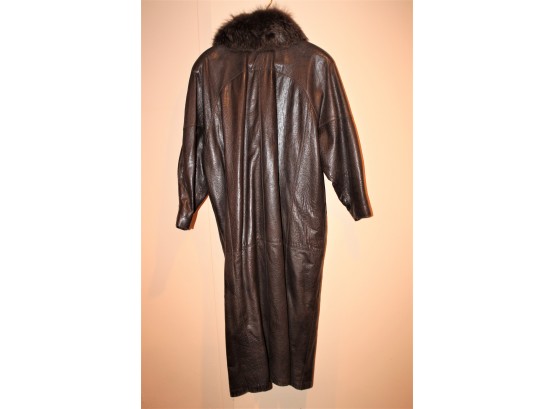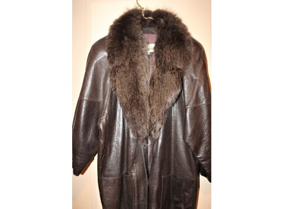 Dita Martin Design Leather Trench Coat W/ Fur Collar - Size 10