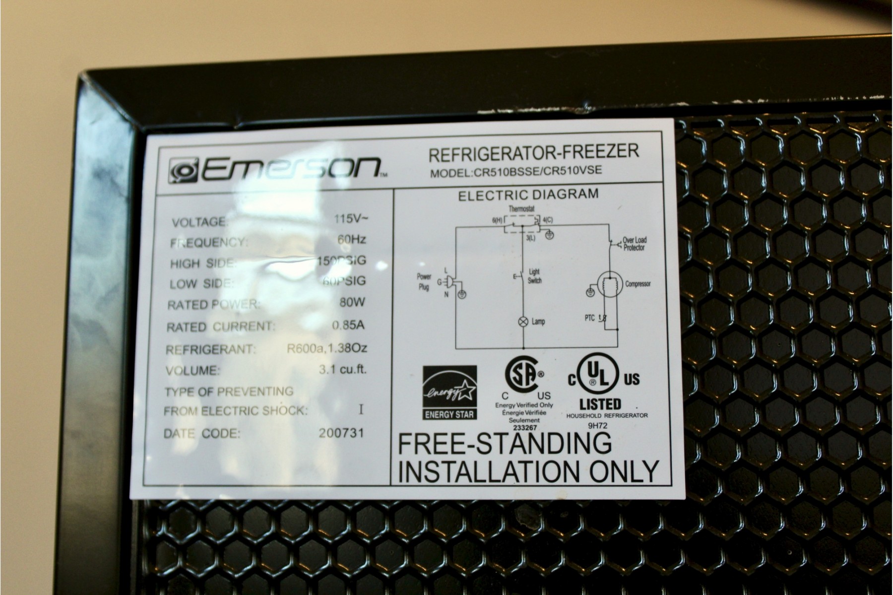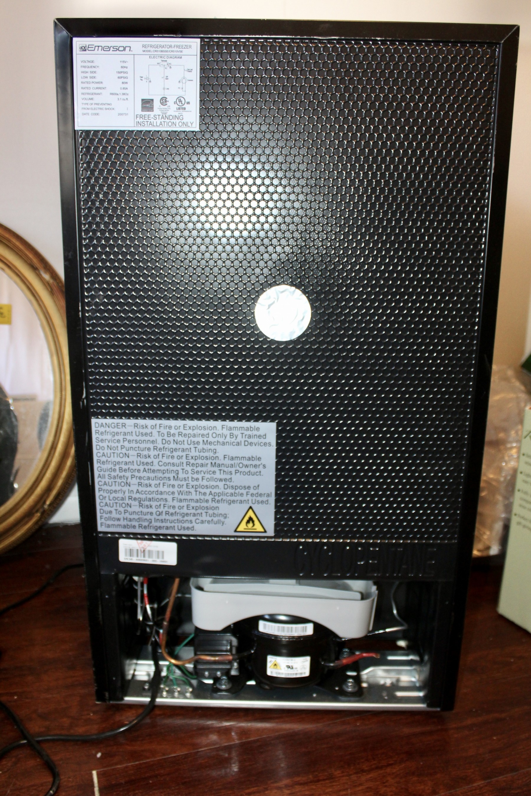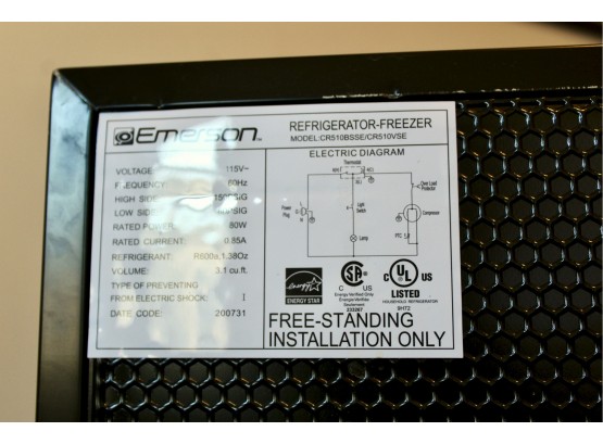 EMERSON Small Refrigerator - Freezer Equipped - Model #CR510BSSE / CR510VSE - WORKS!