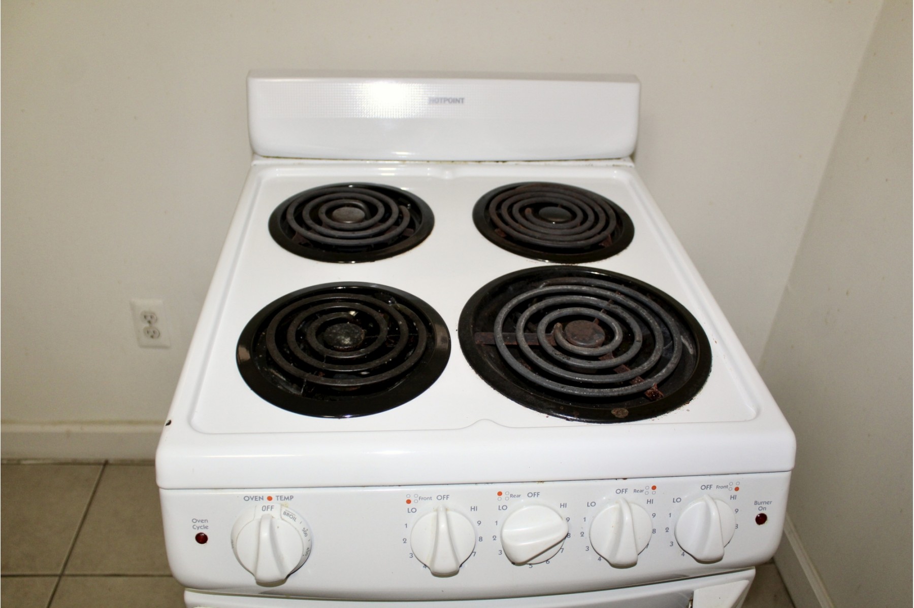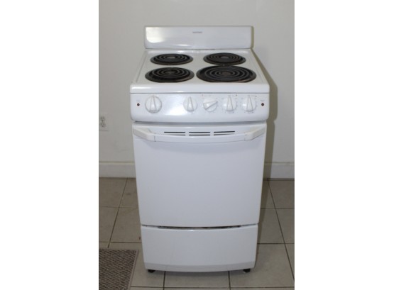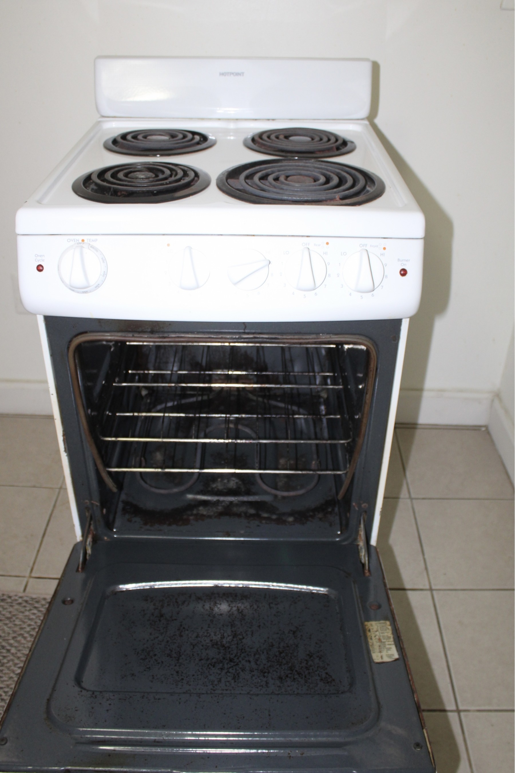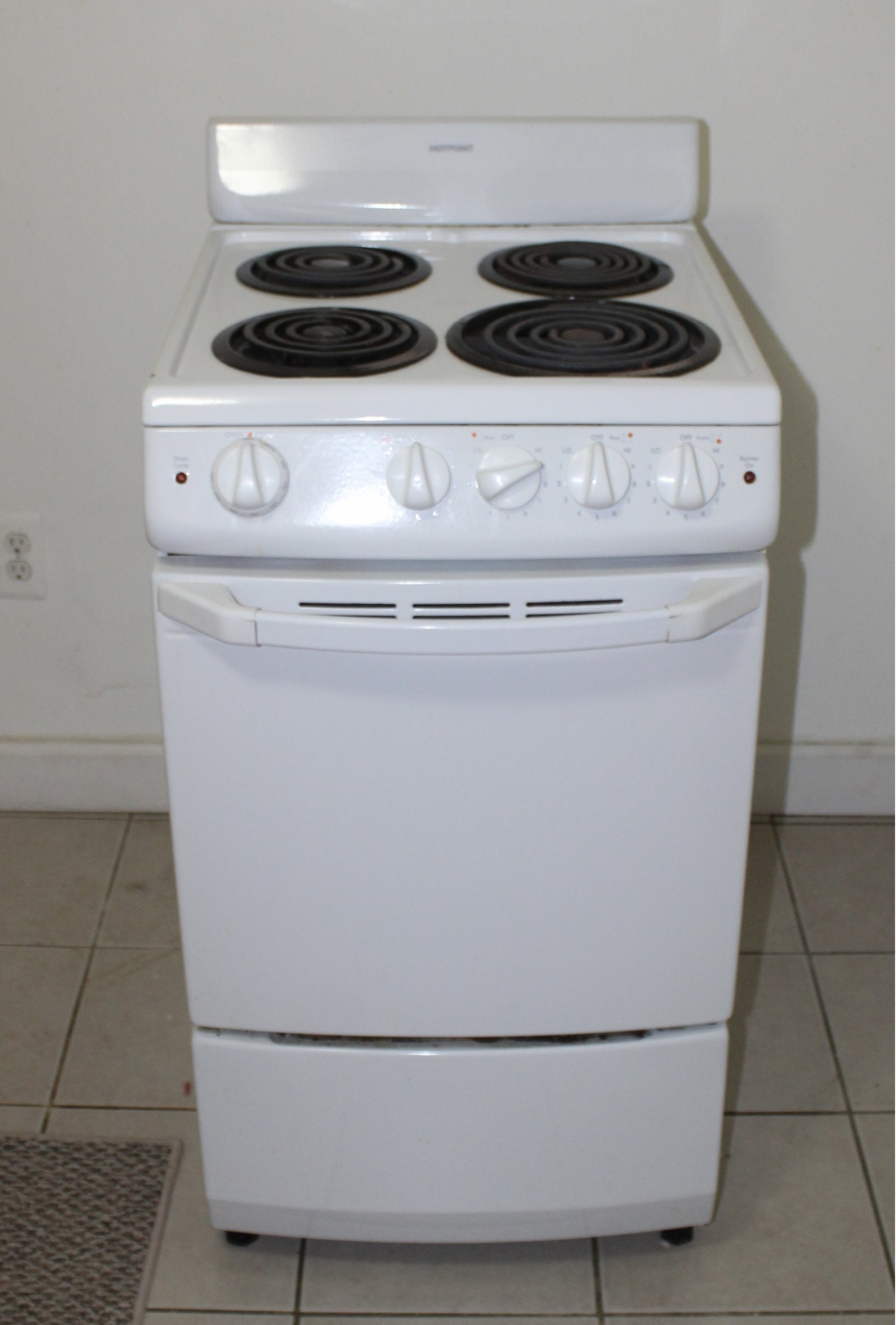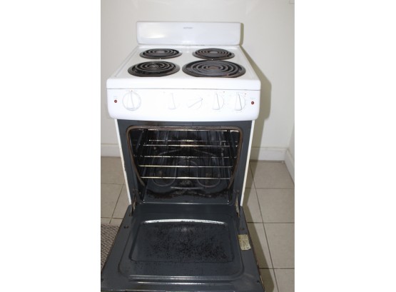 HOTPOINT WHITE ELECTRICAL STOVE - Apartment Size Stove - WORKS! Please note the stove needs to be rewired.