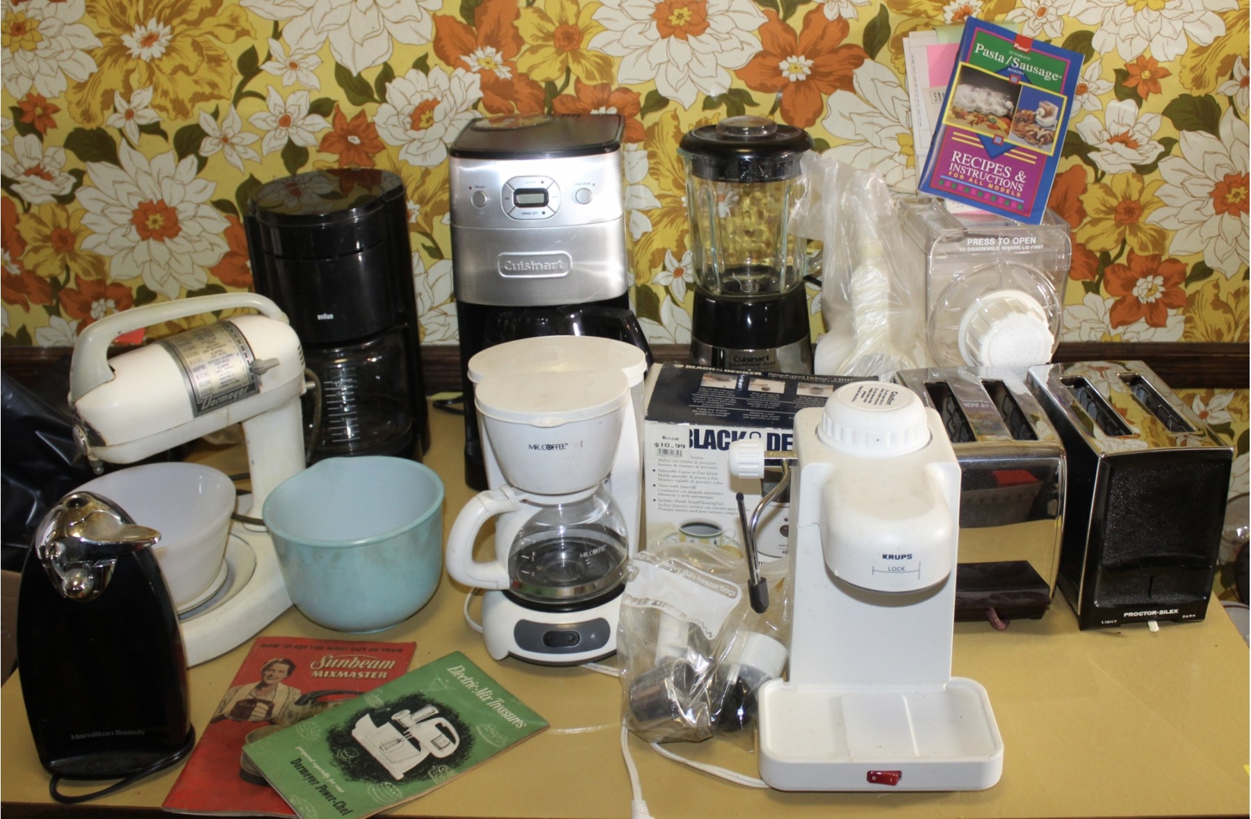 KITCHEN LOT - TOASTERS - CUISINART, PASTA MAKER - COFFEE MAKERS - BLENDERS- COFFEE GRINDER!!