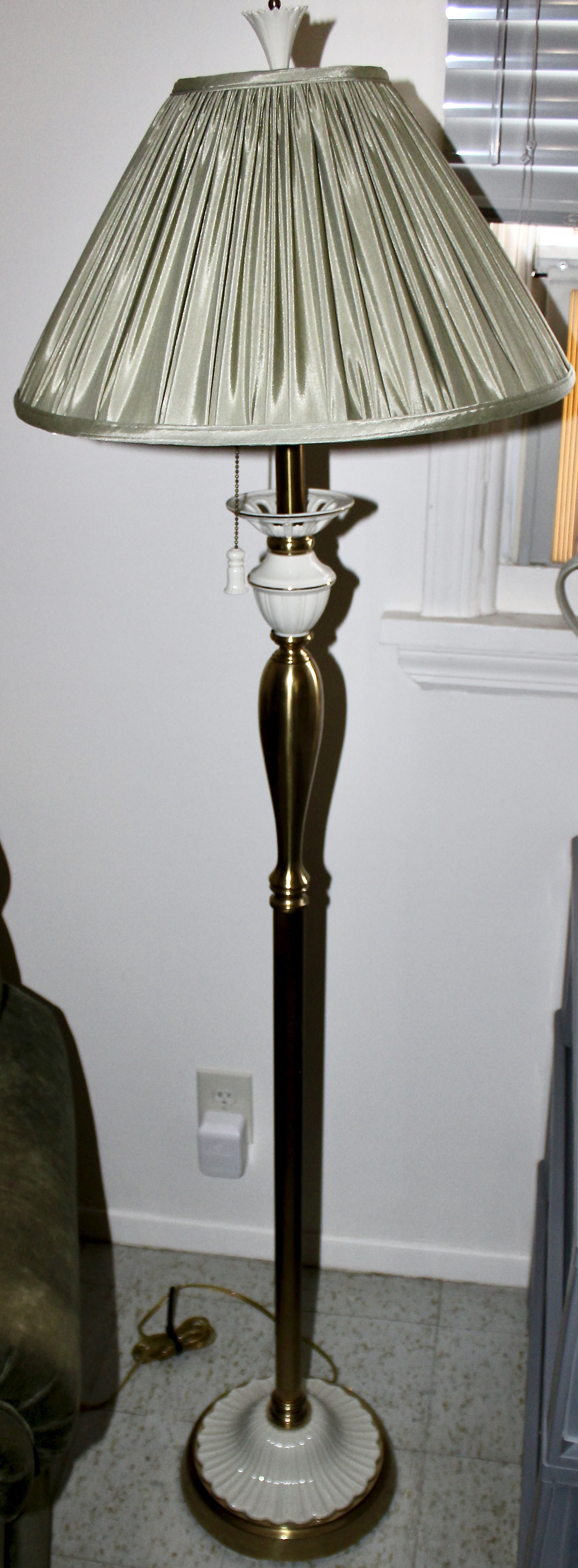 LENOX Vintage Floor Lamp - Brass & Porcelain Accents - WORKS!!