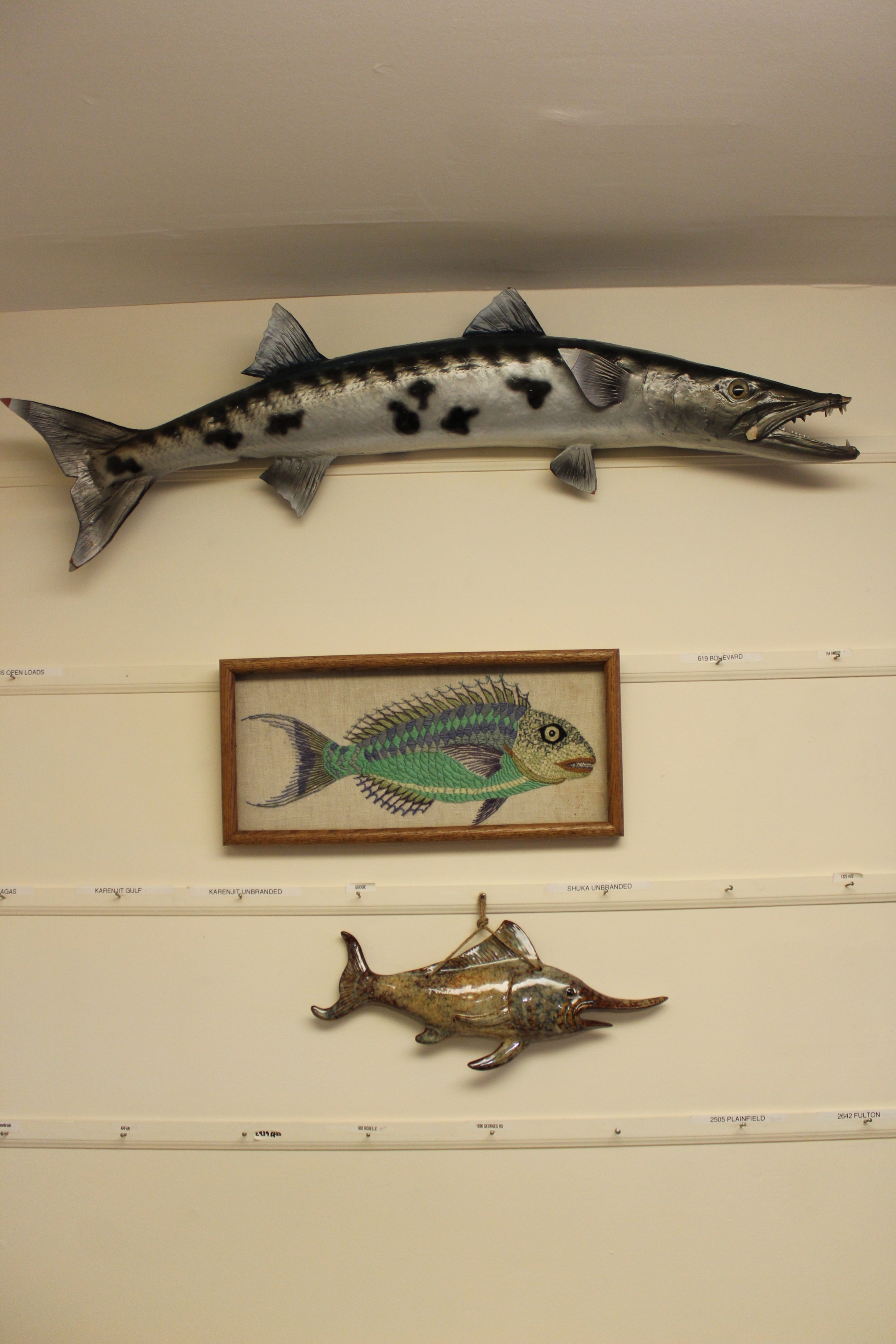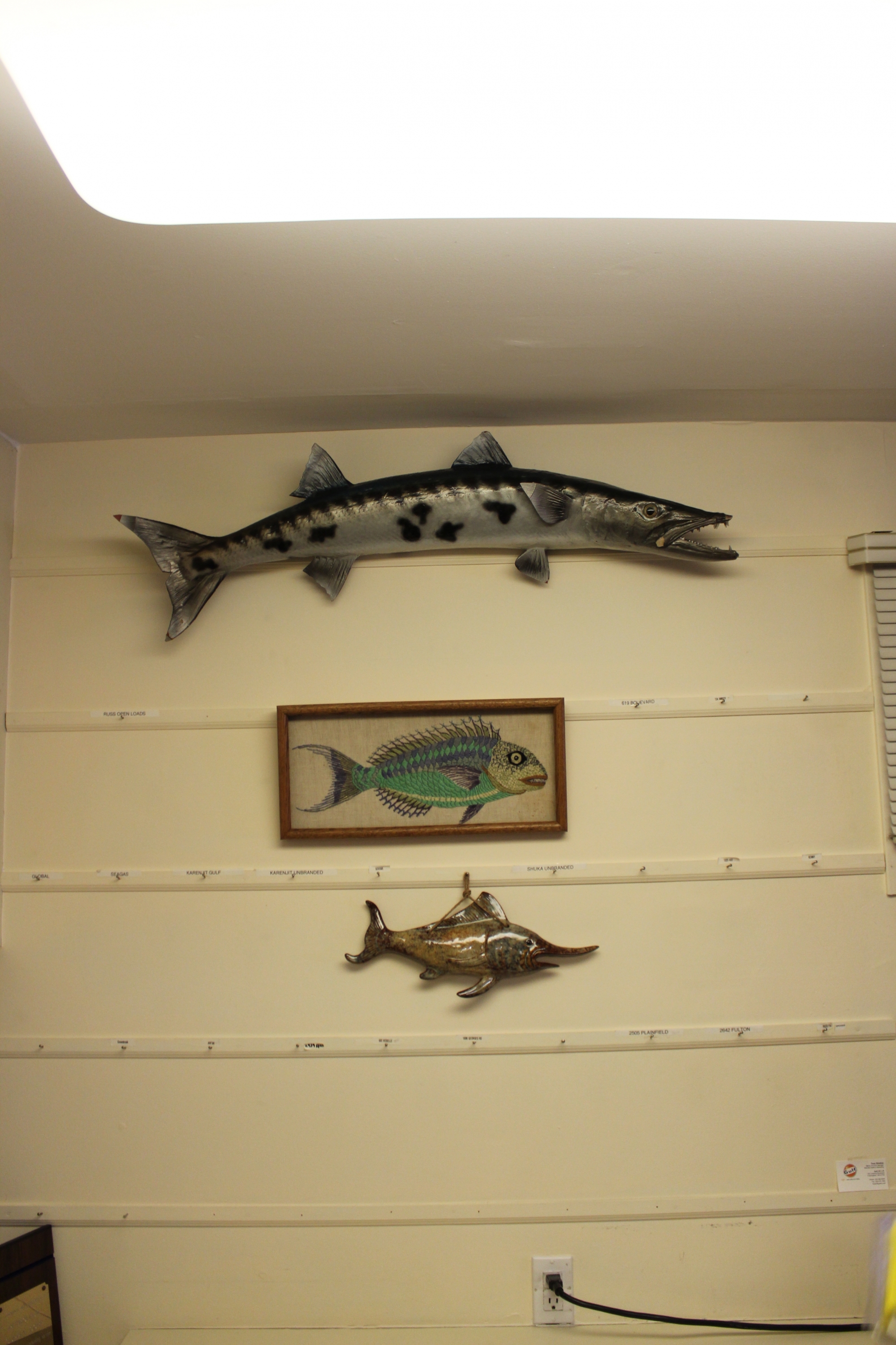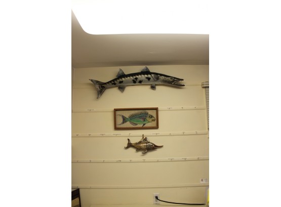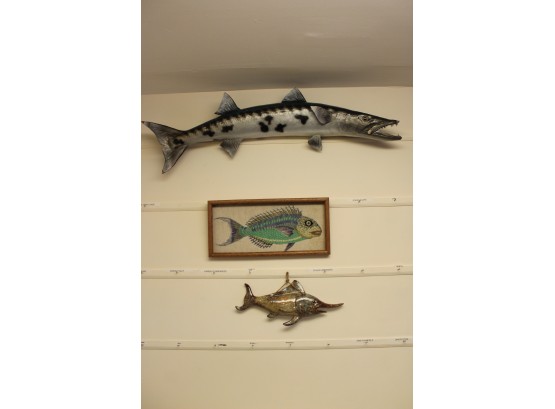 Lot Of 3 Fishes - Hanging Decorative Fish & Framed Art!! Some fishes have some damage or chips, please see pictures