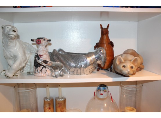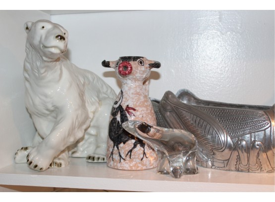 Lot Of Ceramic Animals - Royal Dukes Polar Bear, Cow Pitcher & MORE - Kangaroo Whicker Basket, Cat & Crystal Polar Bear - Assorted Sizes